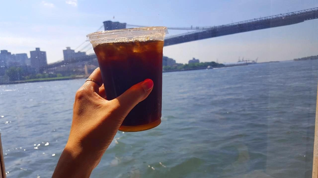 눈인사를 나누고 나니 안내 방송과 함께 유람선이 출발한다. 얼마 만에 배를 타 보는 건가, 조금은 상쾌해진 기분에 창밖을 보고 있는데 갑자기 내 앞으로 쑤욱 들어온 아이스커피. 깜짝 놀라 옆을 보니, 아까만난 '그'다.