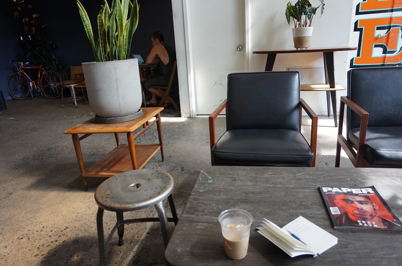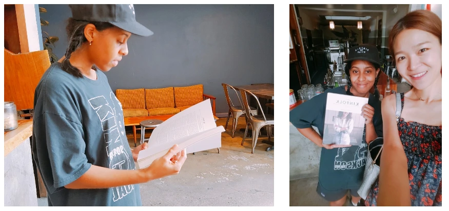 고요한 공간에 음악이 흘러나오자, 금세 2층 천장 꼭대기까지 소리가 울려 퍼진다. 드르륵- 올리자 블라인드 너머 기다리고 있던 햇볕이 깊숙하게 구석진 소파까지 들어온다. 신선한 커피 향이 코 끝을 감돌고, 조금 있으면 우유가 듬뿍 들어간 시원한 라떼를 마시게 될 것이다. 저기 푹신한 소파에서. 그녀에게 킨포크를 선물하고, 매거진 킨포크 그리고 카페 킨포크에 대해 얘기를 나눴다. 그녀는 밤에 열릴 파티에 대해 안내해주었지만, 여행자에게 '다음'이라는 것은 얼마나 아득한 것인지 알기에 슬쩍 미소만 보내주었다.