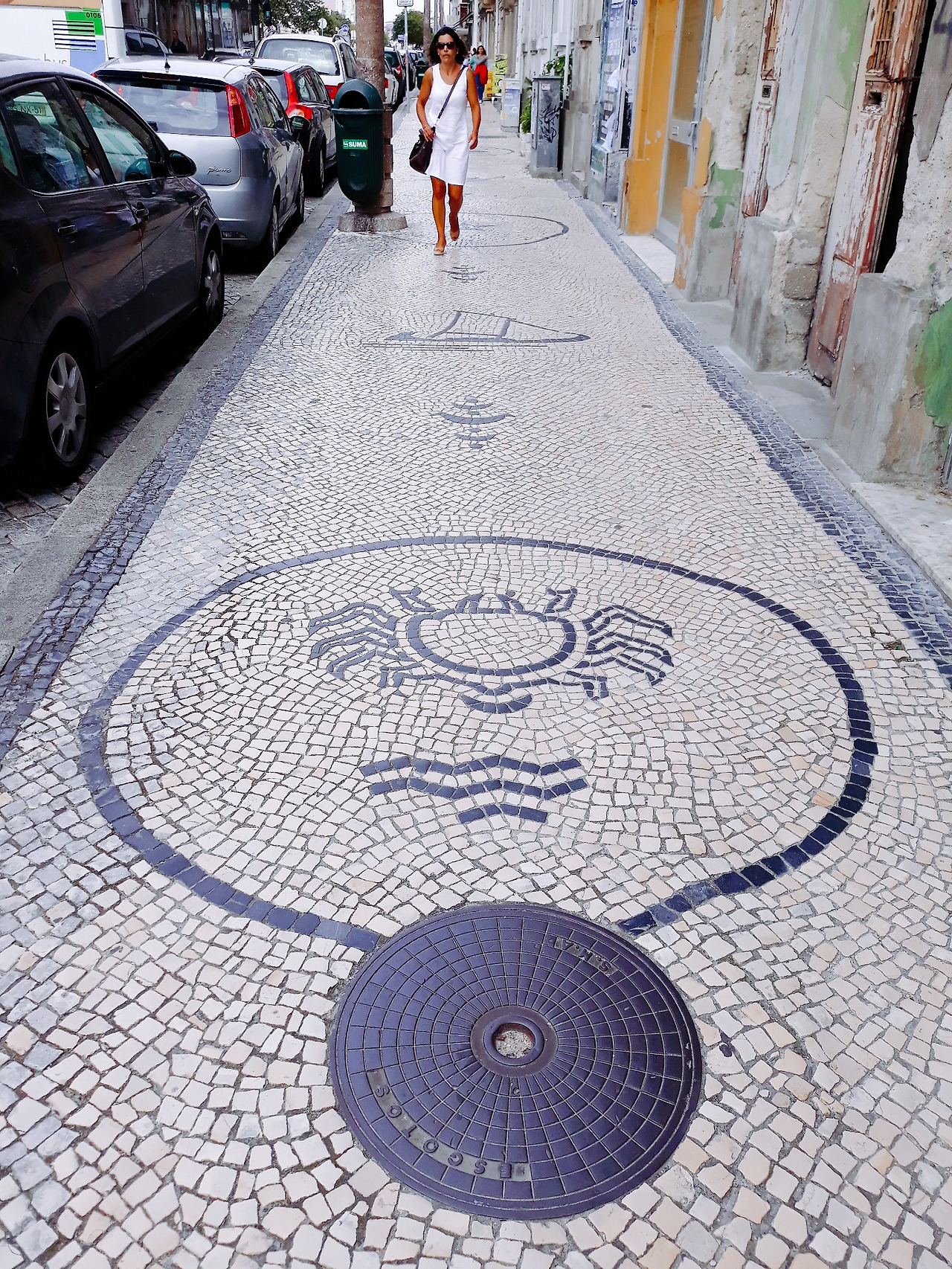 포르투갈의 길거리는 반짝반짝 윤이 나는 돌로 만들어졌다. 비단 거리뿐만이 아니다. 건물의 벽과 집의 대문까지도. 그렇게 단단하게 구워낸 도시다. 유럽에서 돌로 된 길을 마주치는 일은 흔하지만 포르투갈의 바닥은 조금 다르다. 큼직한 돌덩이가 아닌 자그마한 돌이 옹기조기 모여있으며, 물고기나 꽃 같은 그림이 그려져 있기도 하다.