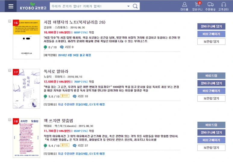 서점에서 부딪치는 매 순간을 즐겨야 했죠.