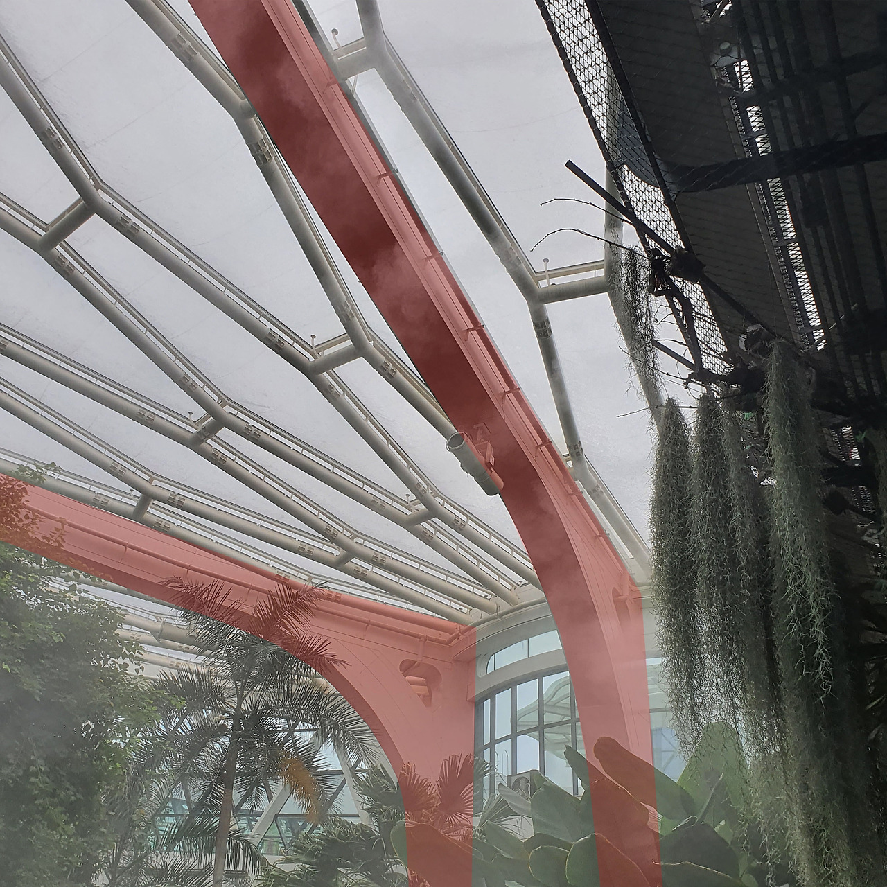지붕을 보면 식물원이라는 선입견 때문인지 엑토르 기마르(Hector Guimard, 1867-1942)의 파리 지하철역 입구 디자인이 떠오른다. 온실의 지붕도 이와 유사하게 곤충의 날개를 확대해 놓은 듯한 모습이었다.