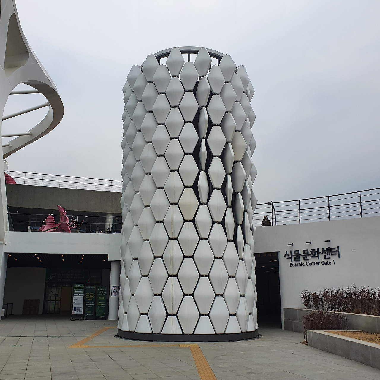 온실 외에도 서울식물원은 재밌는 디자인을 많이 가지고 있다. 식물원 입구에는 키네틱 아트를 활용한 엘리베이터가 설치되어 있다. 엘리베이터의 패널들이 특정 시간대에 회전하여 다양한 입면을 만들어낸다고 한다. 패널의 디자인도 온실의 지붕과 마찬가지로 식물의 세포 형태이다.