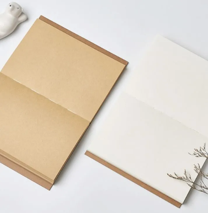 A4용지 1/2 사이즈도 부족할 만큼 꾸준히 책 만들기 작업을 해오셨다면, (짝짝짝 축하드립니다.)그 사이에 아이의 문장력과, 이야기 구성 능력 그리고 삽화 실력은 꾸준히 성장했을 것이다. 아이는 이제 이야기꾼이다. 스토리텔링의 대가이다. 동시에 놀라운 삽화가이기도 하다. 아이의 나이에 이렇게 많은 이야기를 수집한 친구도 많지 않을 것이다. 이에 더해 이제 엄가다(엄마 노가다) 소책자 수작업을 끝낼 때가 되었다. 이제는 아래와 같이 선이 없는 무지 노트를 구매해서 아이의 이야기를 수집하는 일만 하면 된다.
