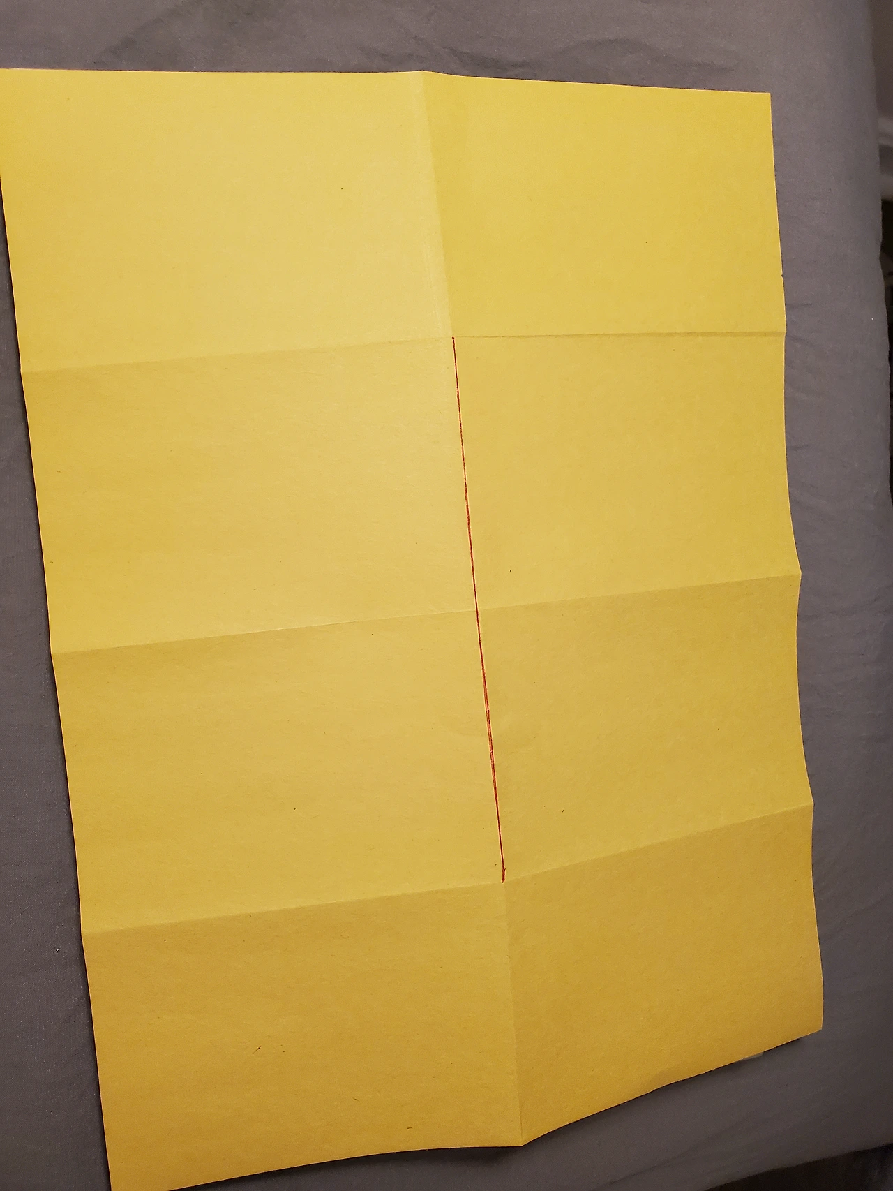 1) A4용지(letter 사이즈 용지) 사이즈의 색지를 8등분으로 접는다. 가로로 반을 접고, 세로로도 반을 접고 다시 그것의 반을 접어 선을 내면 여덟 등분의 직사각형이 나온다.