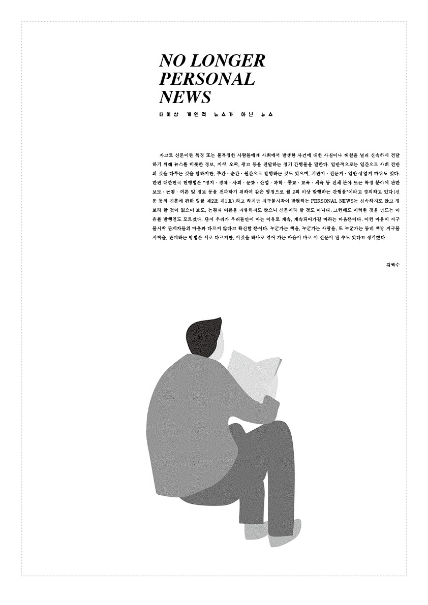 언제나 그랬지만 길을 잃었을 때일수록 딴짓 거리를 만드는 습관이 있다. 그래서였는지 난 뜬금없이 신문을 만들어 보겠다고 선포했다. 그리고 연휴가 끝나는 일요일 마감 무렵 지구불시착 신문 PERSONAL NEWS의 창간호 편집이 끝났다.