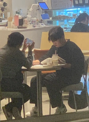 화장실에 갔다가 자리에 앉는데 건너편 카페에 커플이 보인다. 여자는 스마트폰을 보고 있고 남자는 하얗고 가로로 긴 책을 넘기고 있었다. 테이블 위에는 노트가 있어 책을 보며 뭔가를 따라 그리고 있었다. 거리가 너무 멀어 정확히 알 수는 없었지만 지구불시착 그림 그리기 팁을 보고 그리는 것 같았다. 잔잔에게 물어보니 아까 그 커플이 맞는 것 같다고 한다. 세상에 이런 일도 있네. 스마트 폰을 꺼내 줌을 최대한으로 올려 사진을 찍었다. 관찰 카메라 같기도 하고 스토커가 된 것 같기도 했다.