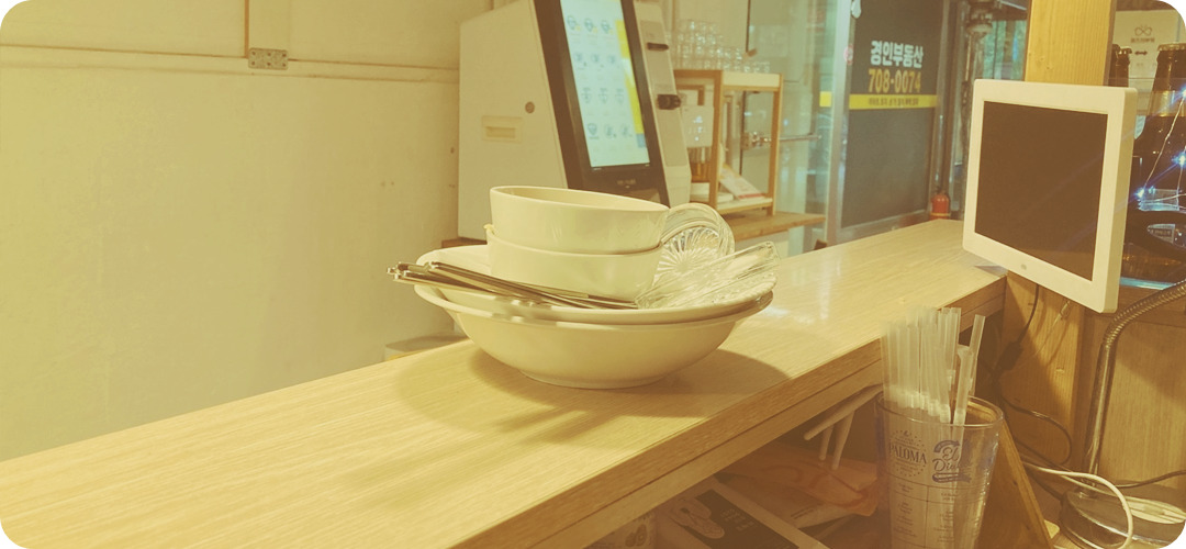 가게로 돌아오니, 손님들은 모두 돌아가고 가지런히 포개져 있는 그릇, 쌓아 올린 물컵, 정돈된 의자와 테이블. 저는 기분이 좋아져서는 맥주 한 병을 꺼내 제 자리에 앉아요. 앗! 그런데 아까 아이를 향하게 했던 선풍기를 다시 제가 있던 방향으로 돌려놓으셨네요. 저도 속으로 ‘고맙습니다’ 오늘은 씁쓰레한 맥주가 입속에서 더 감기는 것 같아요.