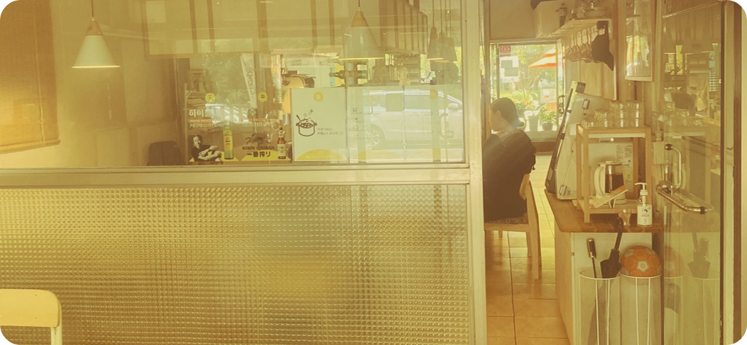벌써, 다섯 바퀴째 이 작은 상가의 복도를 돌고 있는 청춘 남녀가 있습니다. 이 식당은 건물 내측에 있어 양쪽으로 복도가 있고 각각 출입문이 따로 있습니다. 여기가 턴 포인트인가 봐요. 처음에는 손님인가 싶어 볼품없이 움찔댔습니다. 청춘 남녀가 오른쪽으로 지나가면 잠시 후 다시 왼쪽에서 나타났다가 사라집니다. 남자의 걸음이 이상해요. 자세히 보니, 카디건 안으로 환자복이 보이네요. 발에는 깁스를 했고요. 아마도 병문안을 온 여자친구를 애틋하게 배웅하는 과정으로 짐작이 됩니다.