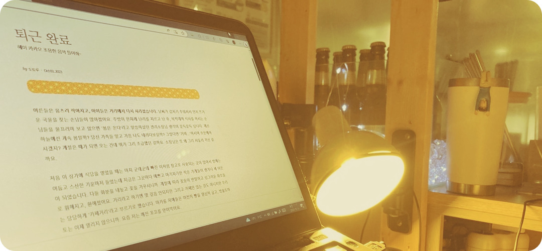 뭐 대단한 글을 쓴다고 몇 날을 엉덩이를 붙이고 앉아, 혼자 킥킥대가며 밥도 거르고, 때론 줄담배를 피워가며 밤을 새기도 했습니다. 그러고 보니 이 글은 손님들과 나눈 7년간의 대화 같다는 생각이 드네요. 짧은 에피소드에서는 꺼내지 못한 최목사님, 착한 민구, 엉뚱한 민재, 우산 청년, 케잌 사장님, 수린이와 채린이 자매도 떠오릅니다. 기회가 된다면 그들의 이야기도 하고 싶어요.