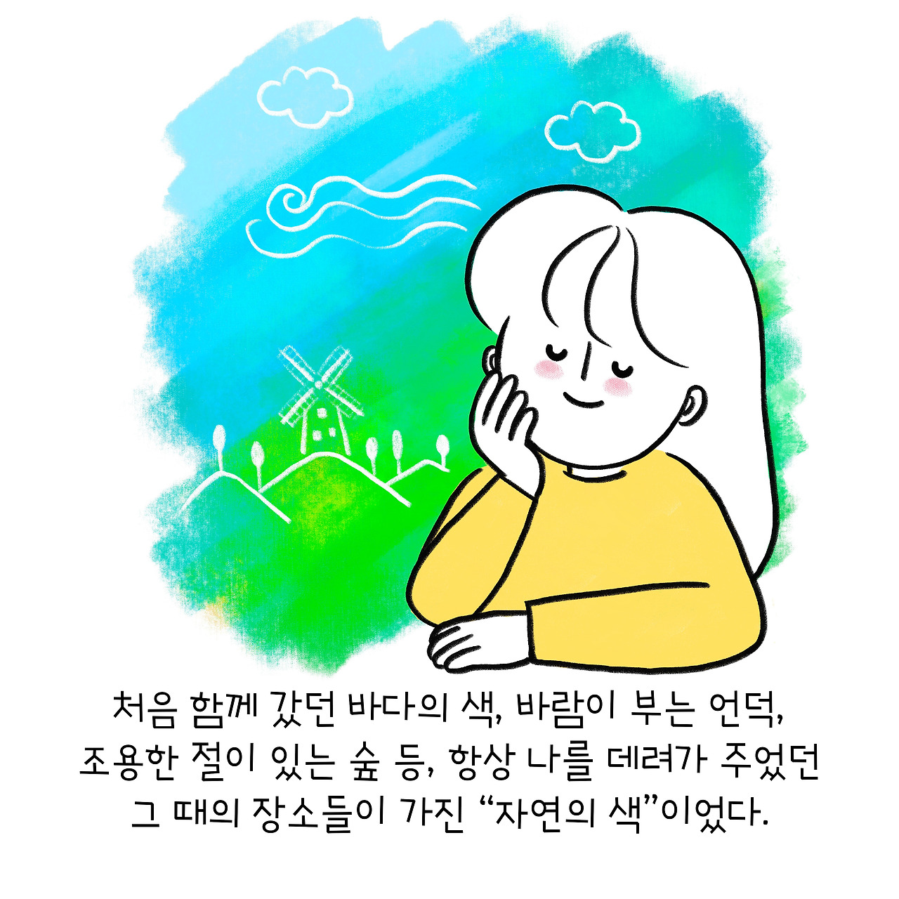 그 그리움은 "고향의 색"인 자연의 색이었어요.