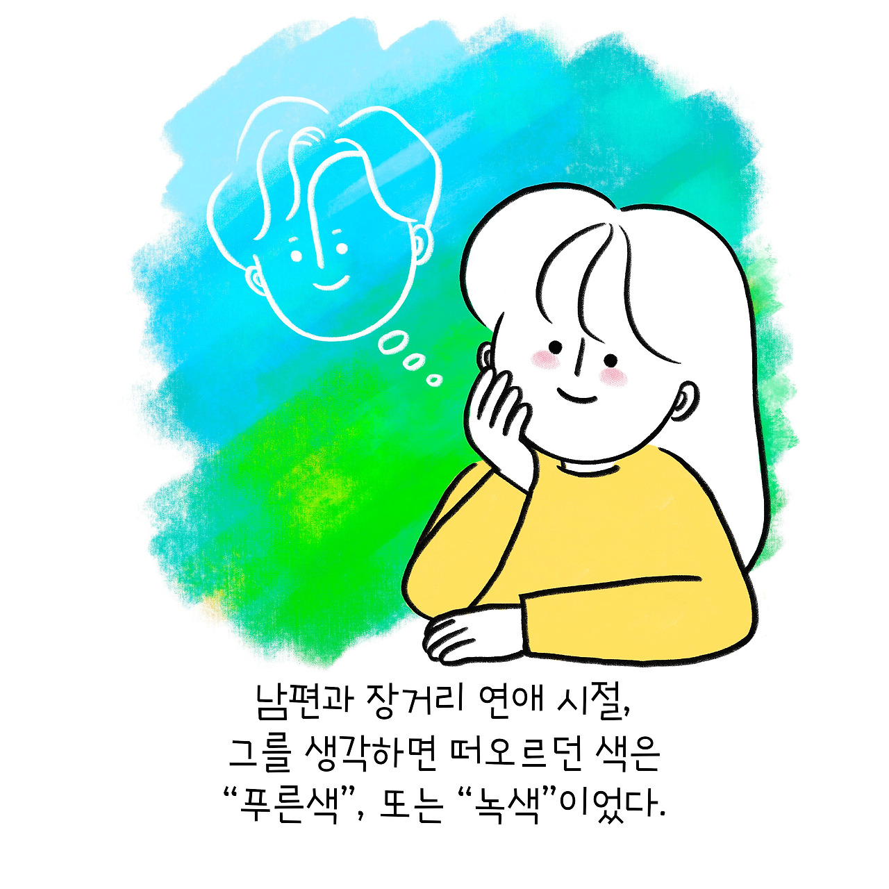 떨어져 있는 동안 그를 떠올리면 항상 떠오르는 색은 "푸른"계열의 색이었어요.