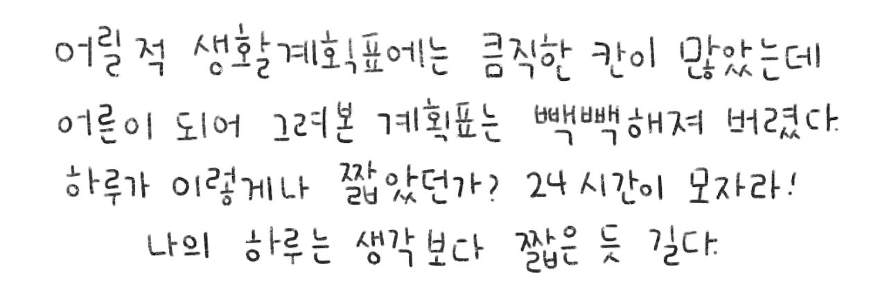 그러나 오늘만 살지 않기에 짧게나마 눈을 붙여본다. 몇 시간 후 다른 사람들과 같은 아침을 맞이한다. 출근길 지하철에 몸을 싣고, 모자란 잠을 청해본다. 그렇게 나는 하루하루를 누구보다 길게 보내는 중이다.