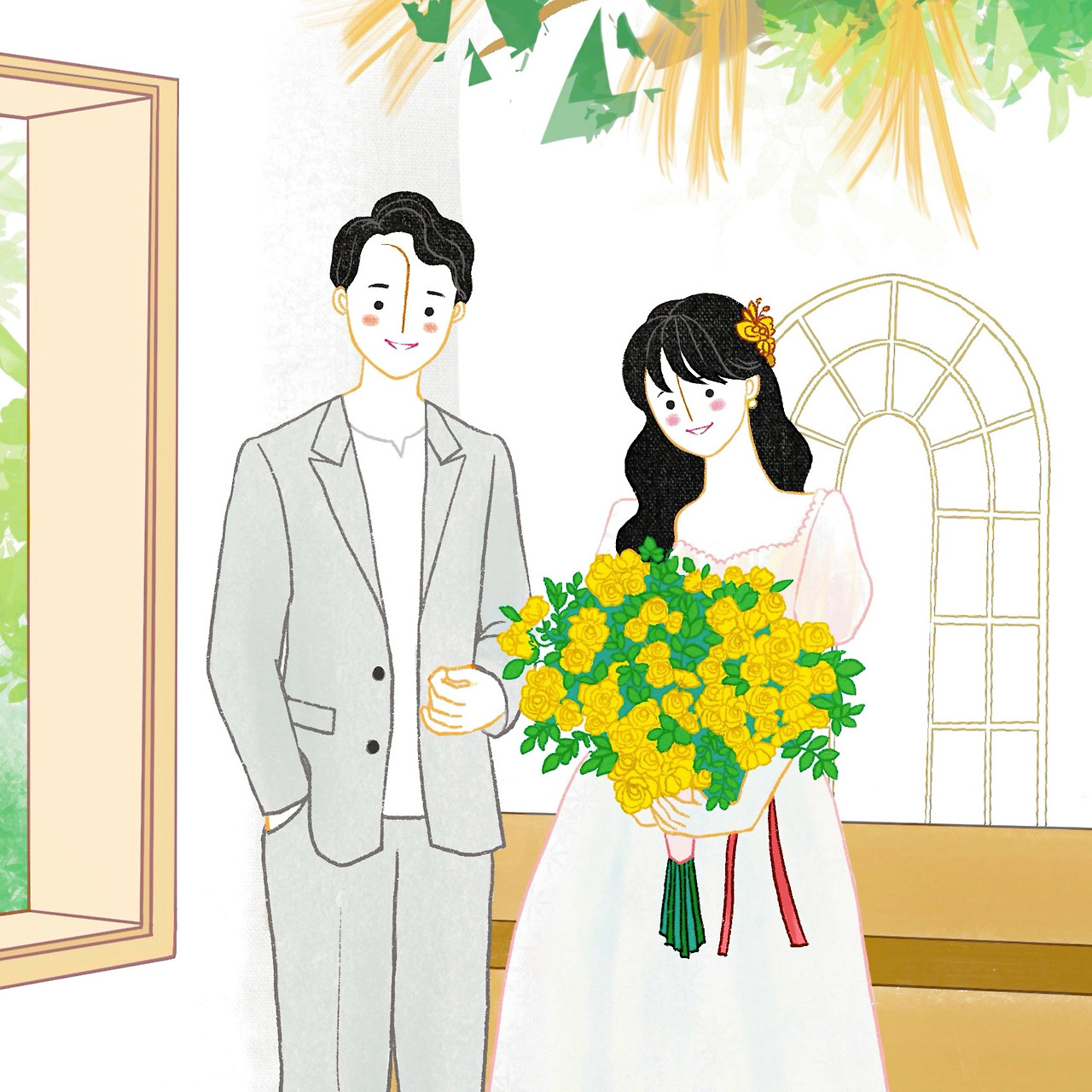 꽃을 한아름 안고서