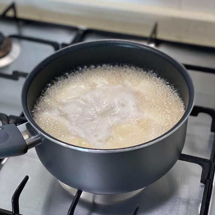 떡을 물에 10분 정도 담가 놓는다. 사실 이것에도 좀 의심이 있다. 어차피 한참을 끓일 텐데 굳이 물에 담가놓아야 하는 건가. 의심은 들지만 확신하지는 못해서 하라는 대로 그냥 담가 둔다. 사골곰탕에 물 200ml를 더 넣고 끓인다. 처음 만들 때에는 진한 국물을 먹겠다고 물을 넣지 않았더니 많이 느끼했다. 그 뒤로는 항상 물을 더 넣는다.