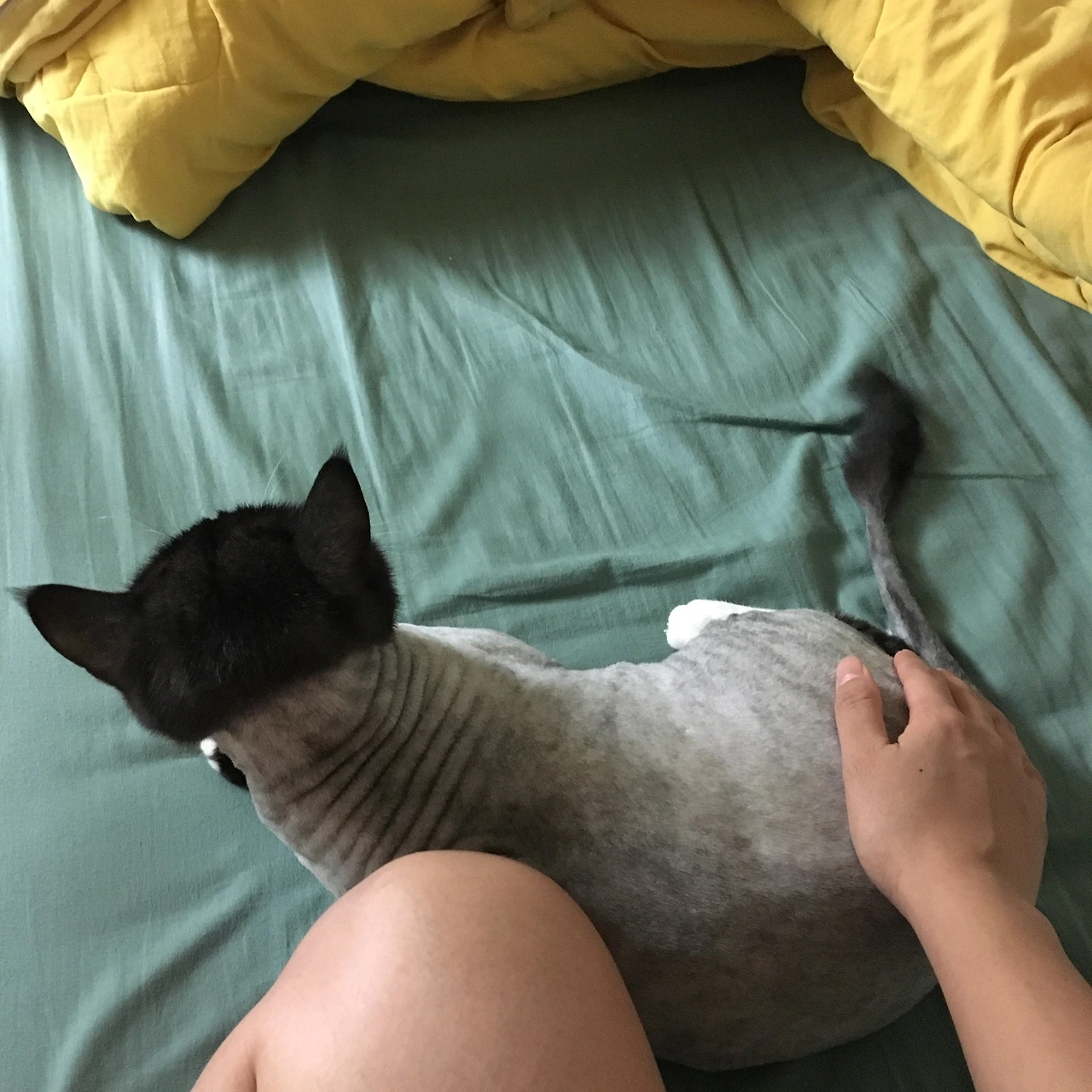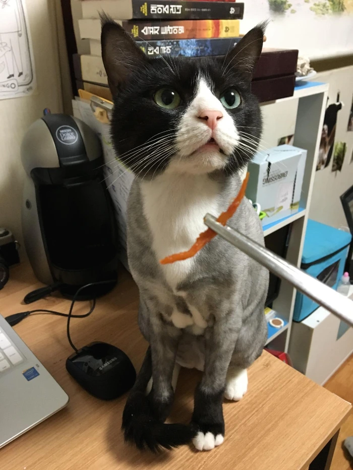 대근이와 함께 살기 시작한 후, 결막염이 생겨 (고민하다가) 대근이의 털을 밀었다. 처음 해보는 미용이었지만 대근이는 나를 믿고 몸을 맡겨 주었다. 못난 집사 때문에 대근이가 고생하는 것 같아서 미용 후엔 매번 무릎을 꿇고 사과했다. 물론 맛있는 간식과 캣잎은 덤이었고. 그렇게 사과를 하고 나면 대근이는 내 마음을 받아주듯 내 곁에 자리를 잡았다.