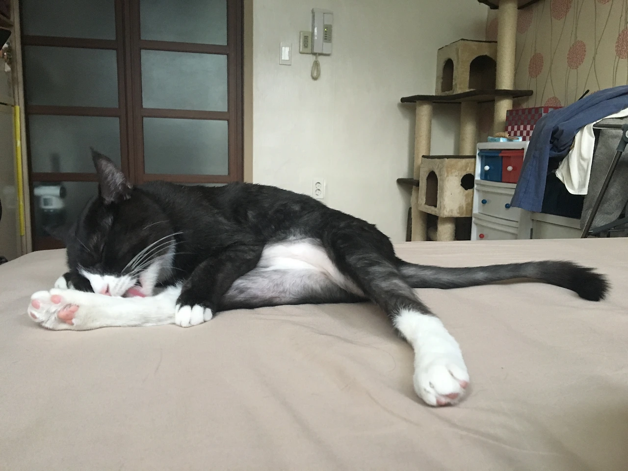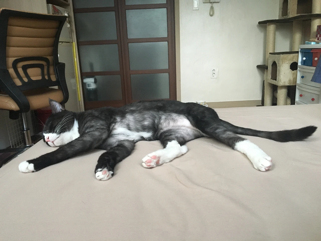 다행히, 대근이는 이사한 화곡동 집에서도 찰떡같이 적응을 했다. 첫날부터 침대에 배를 보이고 눕거나 구석구석을 돌아다니다 바닥에 철퍼덕 엎어지기도 했다. 어디서 이런 말을 들은 적 있다. (러시아 풍습이랬나) 새집에 들어가면 먼저 고양이를 풀어놓아 보라고. 그때 고양이가 몸을 말고 쉬거나 눕는 자리가 침대를 놓아야 하는 자리라고 하더라. 풍수지리적으로 동물에 관한 이야기야 종류가 다양하겠지만 나는 대근이가 좋아하는 곳이 곧 나의 자리라고 믿기로 했다. 이러나저러나 대근이가 좋으면 됐다, 나는.