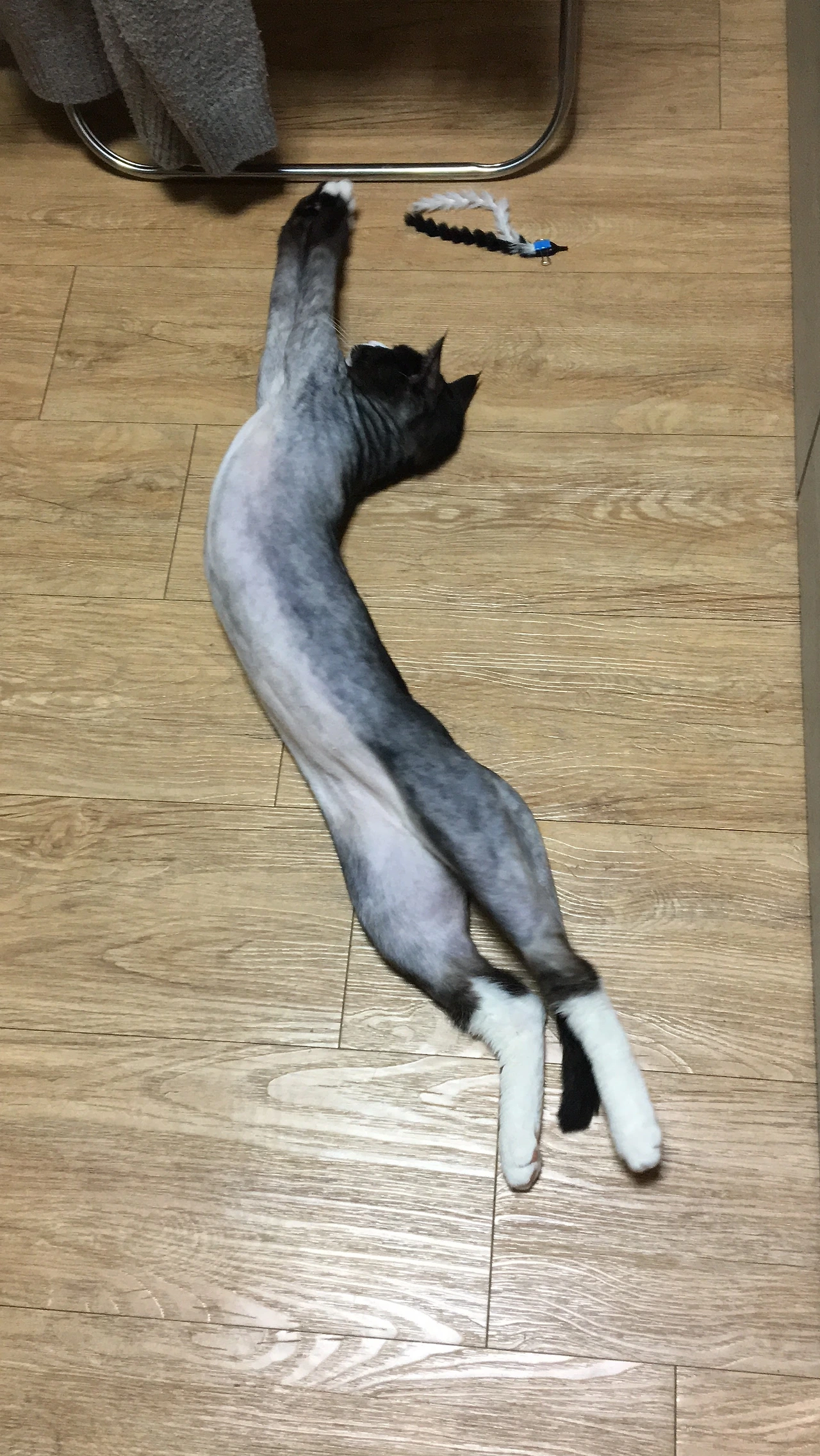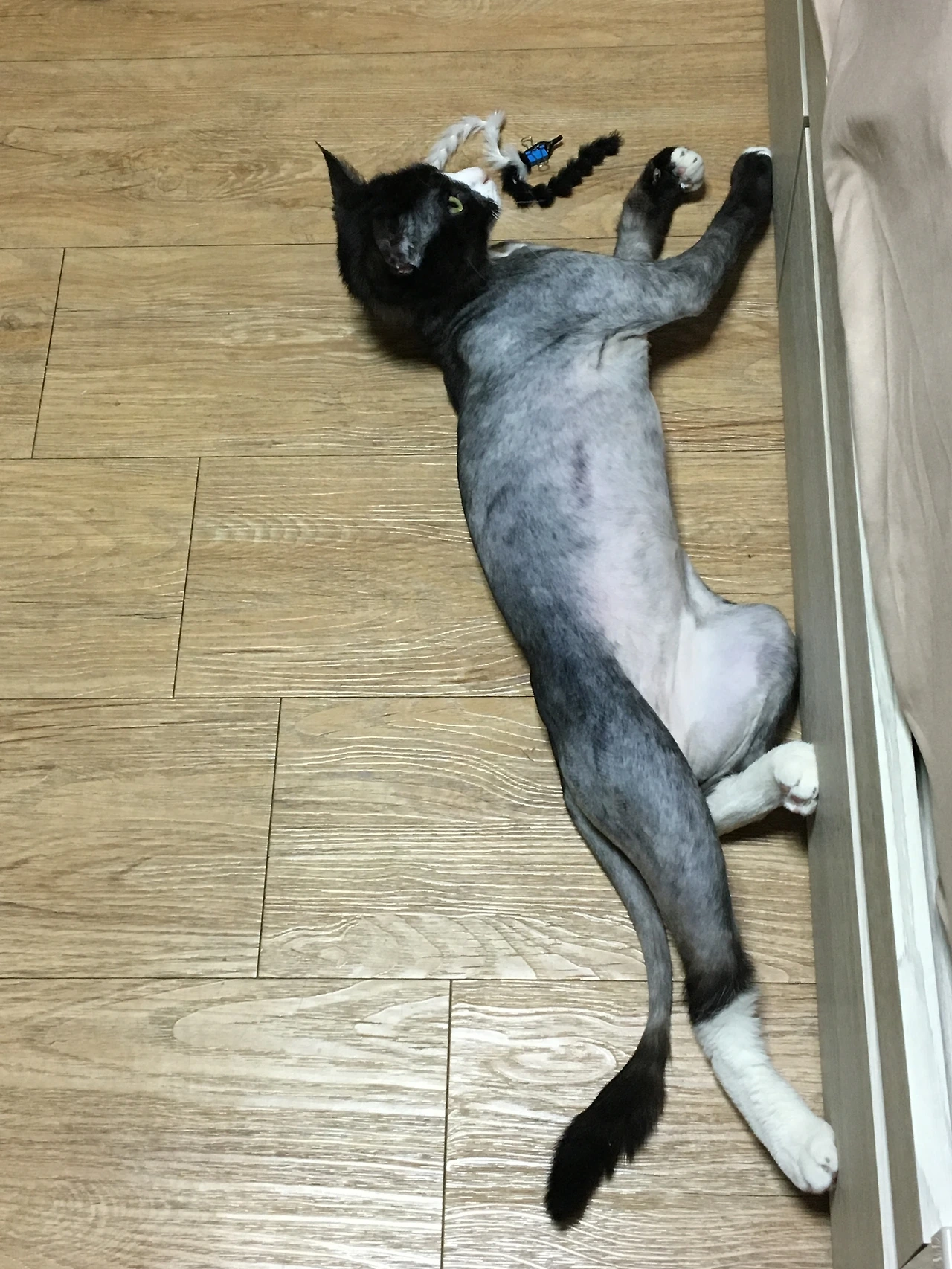 고양이는 스트레스에 취약하다고 했다. 그래서 가능하면 대근이가 원하는 대로, 편안하게 내버려 둬야 하는데 그 마성의 귀여움 때문에... 나는 수시로 대근이에게 장난을 쳤다. (상당히 귀찮아 하지만 받아주긴 한다)