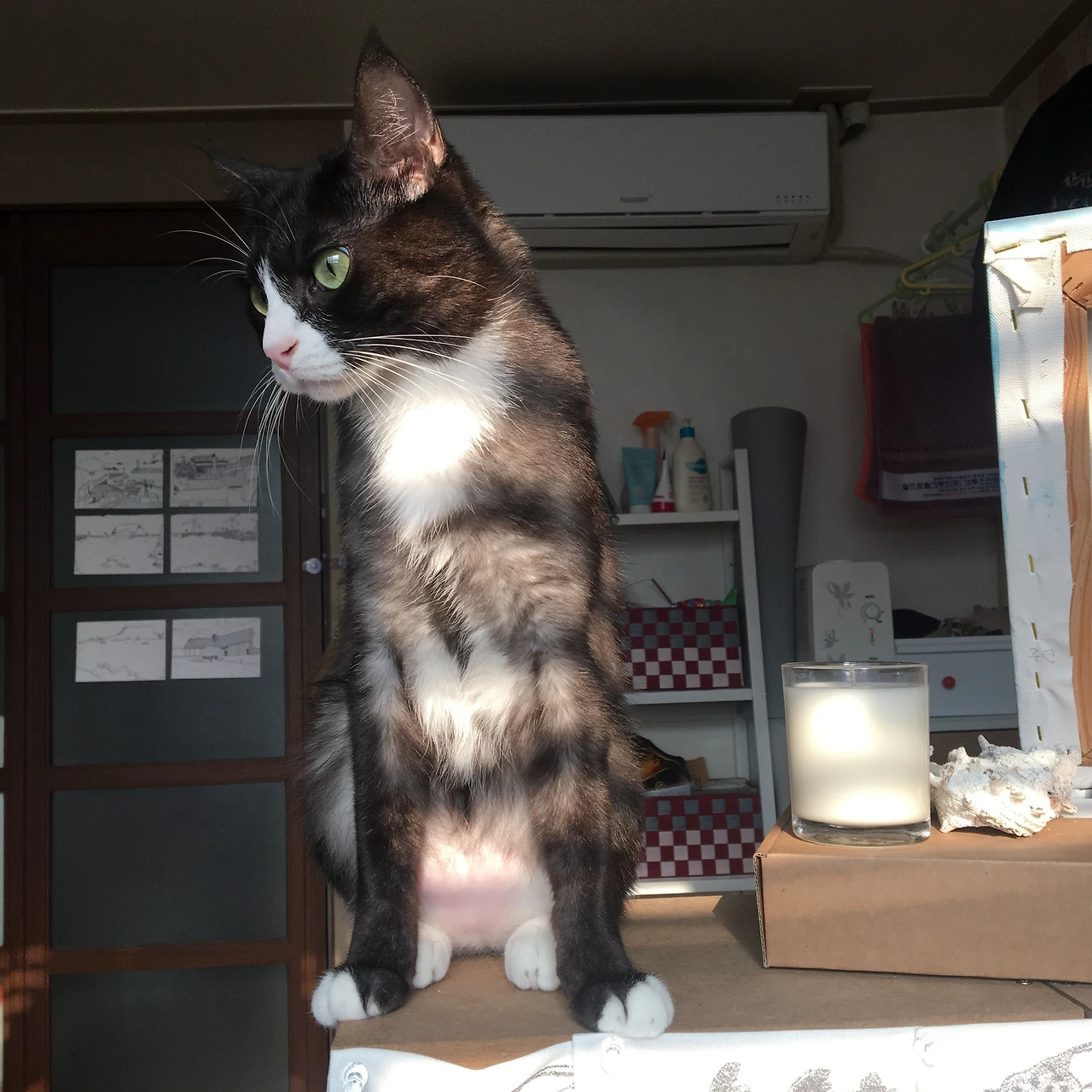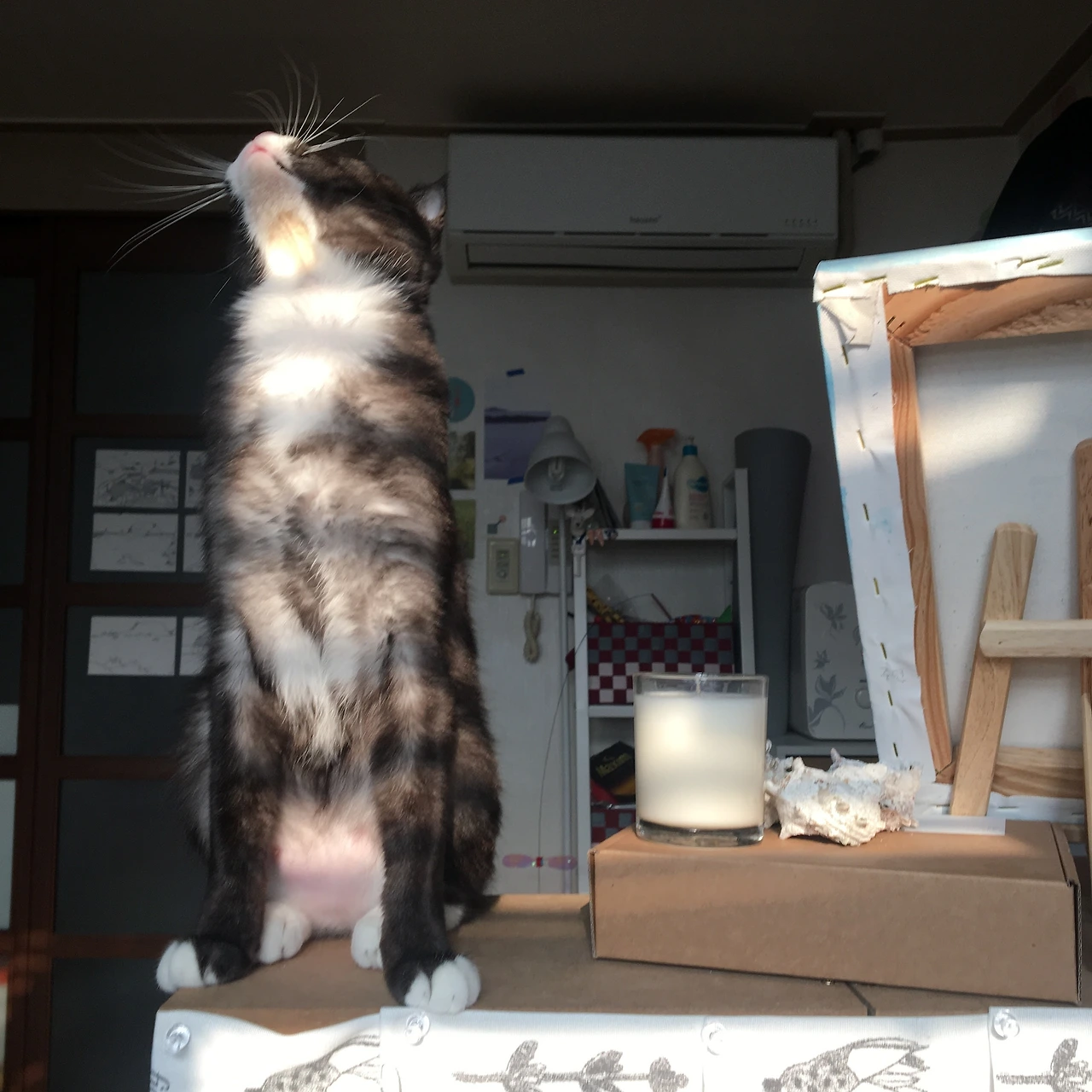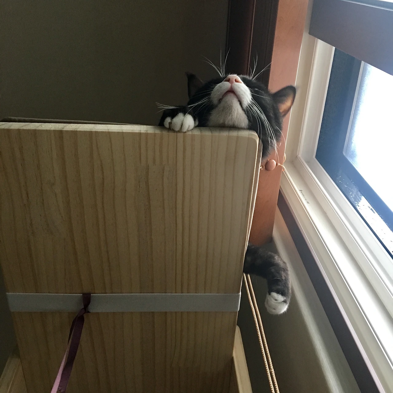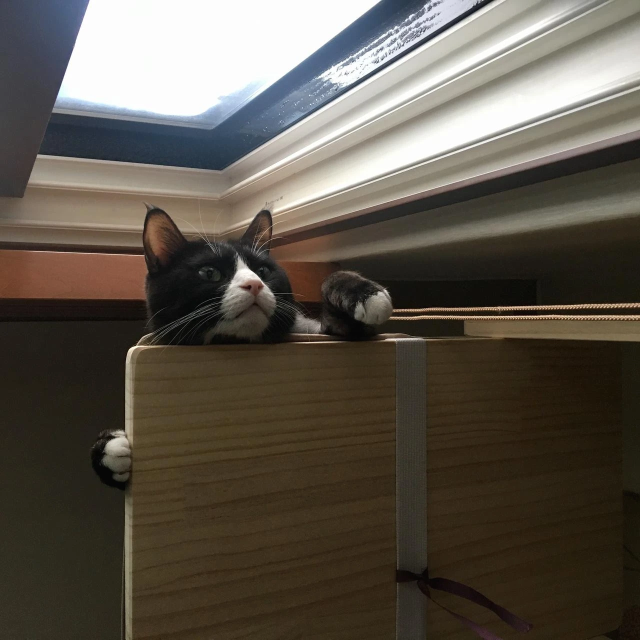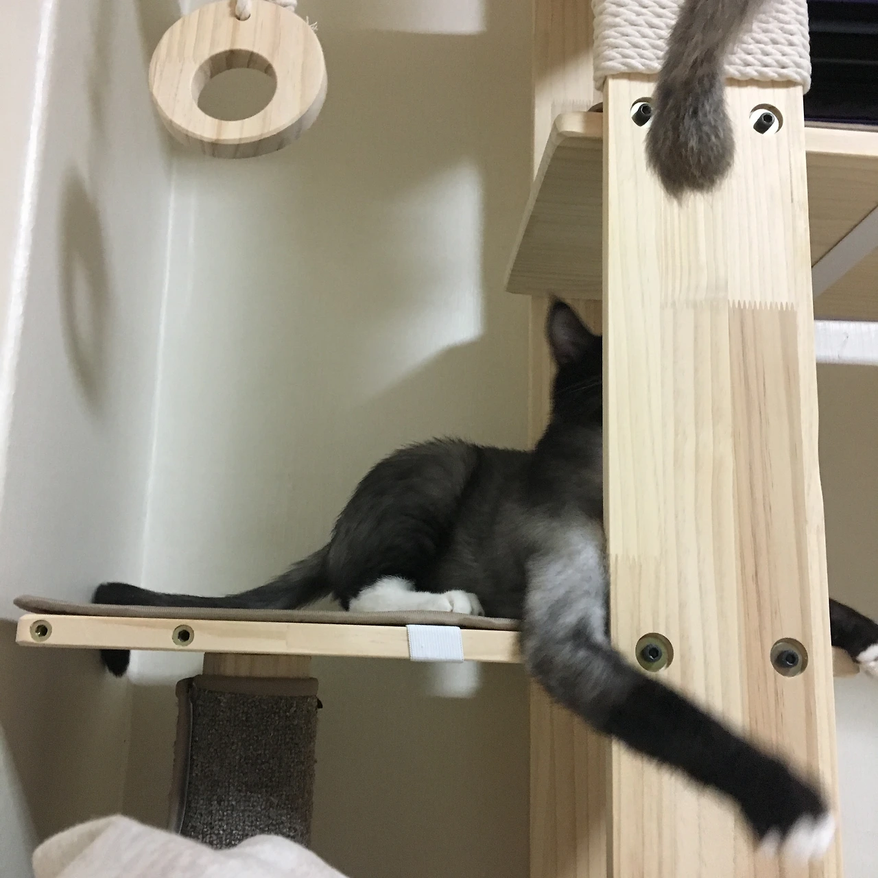 집이 점점 자리를 잡아갔다. 어수선하던 집 내부는 대근이의 물품으로 하나 둘 차기 시작했고 캣타워도 먼지가 덜 날리는 원목으로 바꿨다. 물건을 어지르지 않는 대근이 덕분에 내가 좋아하는 것들을 진열할 수 있었던 게 가장 좋았다. 물론 나중에는 어지럽게 놓여있던 것들을 싹 치우고 죄다 수직 공간으로 만들긴 했다. 다만 저 때는 저 집에 적응을 하던 기간이라, 이것저것 로망을 실현하느라 바빴을 뿐. 그래도 수직 공간 위의 대근이는 미친 듯이 귀여워서 사진을 안 찍고는 버틸 수 없을 정도였다!