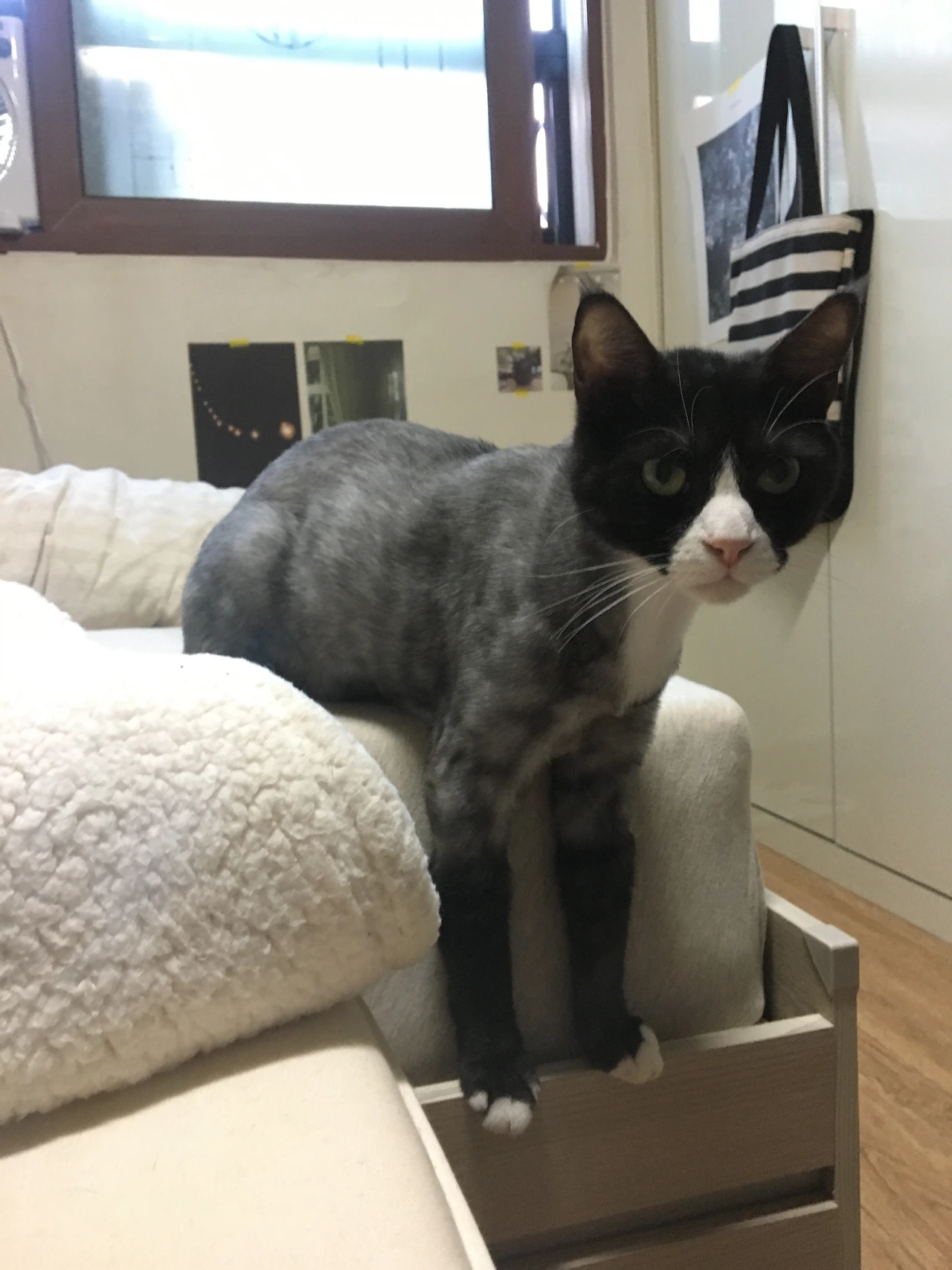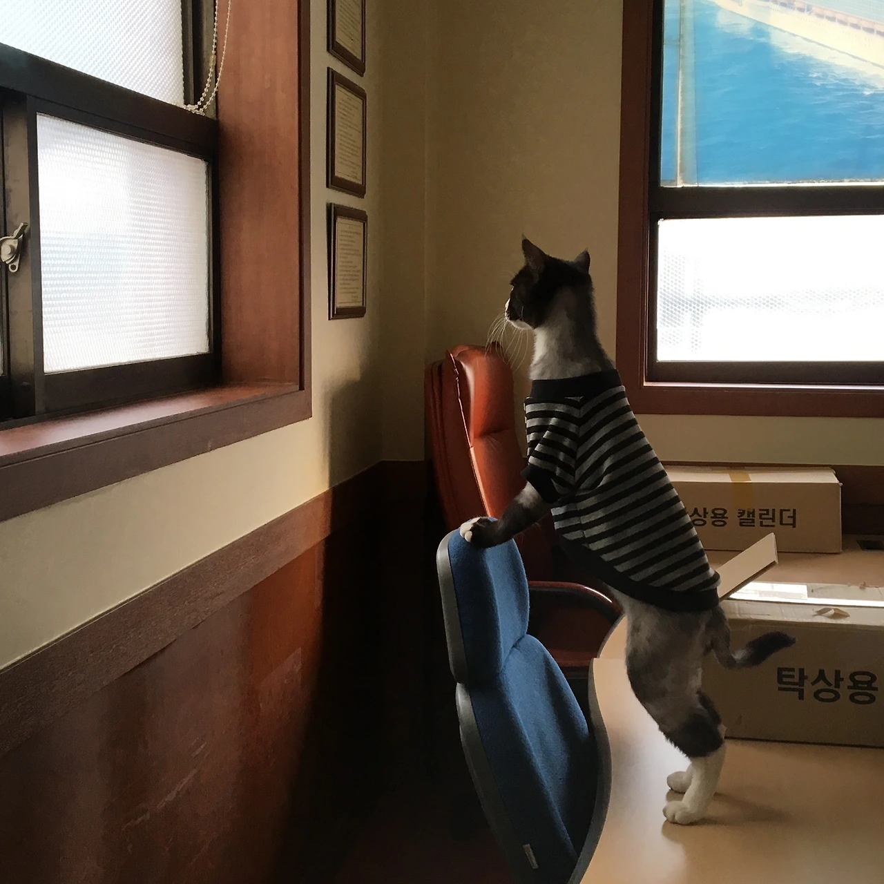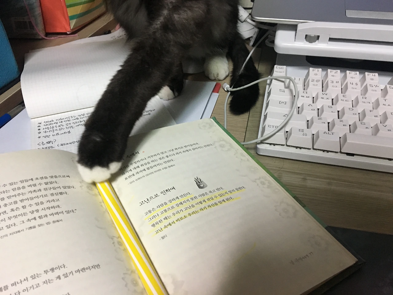 대근이에게 영역이란 내가 있는 곳이랬던가. 원래 살던 곳과 완전히 달라진 환경에도 대근이는 찰떡같이 적응했다. 창틀, 바닥, 장롱 위, 서랍 위... 온갖 곳을 탐험하는 통에 엄마와 나는 더 부지런해졌다. 사실 손에 닿지 않는 곳은 자주 청소를 못 하는 게 현실인데, 대근이가 오고나서 매일 매일 손 닿지 않는 곳까지 물걸레질을 했다. 고양이를 키우지 말라던 엄마가 누구보다 대근이의 건강을 생각했다. 잘 알고 있다고 생각했던 부모님의 새로운 모습을 대근이로 인해서 알 수 있었다.