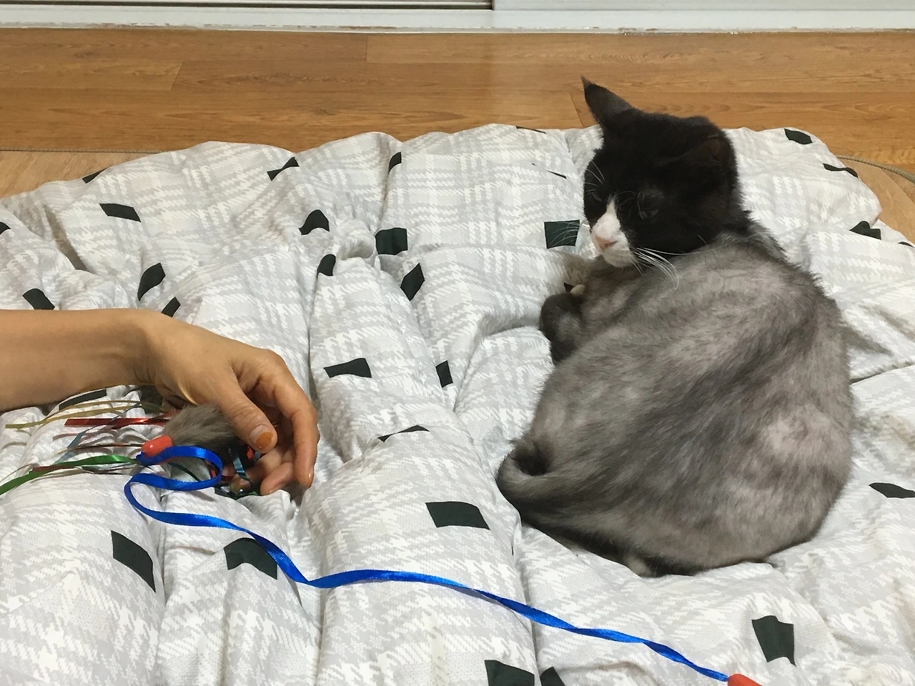 대근이와 함께 지내면서 이것저것 참 많이도 샀다. 혼자 있을 때 가구를 고르는 기준과 대근이가 있을 때 가구를 고르는 기준이 확연히 달라지고, 모든 게 대근이 위주로 흘러갈 때. 문득 '같이 산다'는 건 이런 거구나 깨닫기도 했다. 대근이가 올라가도 튼튼한 가구, 대근이가 좋아하는 장난감, 대근이가 좋아하는 캣타워, 대근이가 좋아하는 담요. 하나하나 대근이를 생각하고 배치했다.