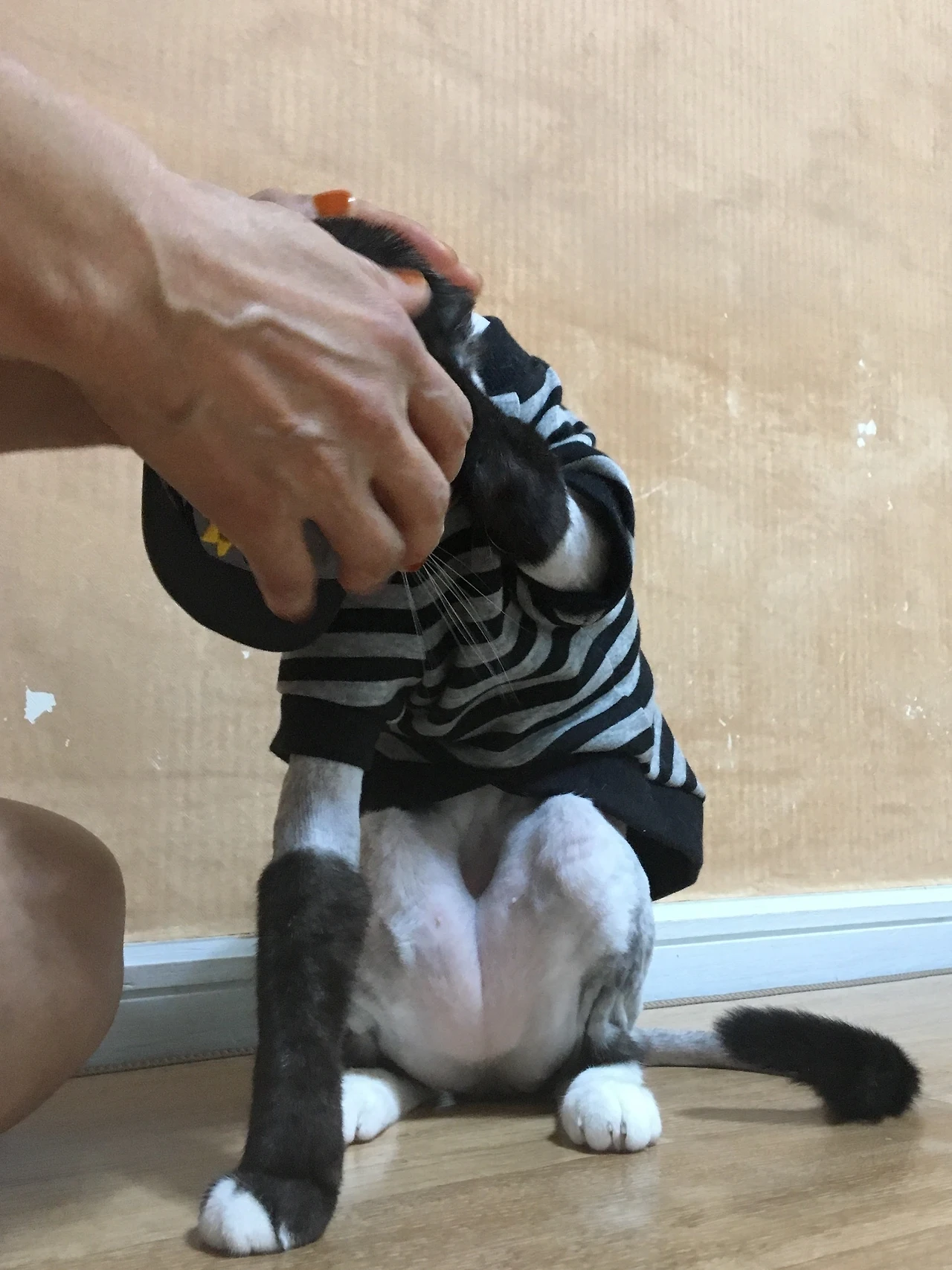 간혹 귀여운 것들이 보이면 어김없이 구매해 대근이에게 적용(?)해 보았다. 대근이가 모든 걸 허용해 주는 시간은 1분 남짓. 그 찰나에 호다닥 사진을 찍고 엄마와 나는 깔깔거리며 웃었다. 나와 대근이의 거리만큼 엄마와 대근이의 거리도 조금씩 가까워지고 있었다.