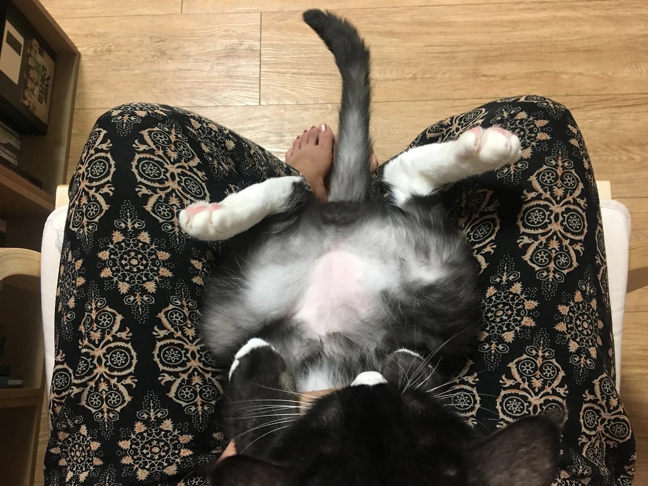 빛에 반사되면 반짝이는 대근이의 털. 잘 빠진 턱시도와 양말, 쫑긋 서 있는 귀. 오밀조밀 귀여운 솜방망이와 젤리. 한 손에 쏙 들어오던 너의 엉덩이. 손바닥을 가져다 대면 살짝 턱을 괴던 너의 행동. 기분이 좋으면 지그시 감던 눈. 대근이의 모든 게 선물 같고 기적 같았다. 대근이가 나에게 온 일 자체가 묘연이라 생각해서 그랬던 건지, 난 대근이를 볼 때마다 운명을 실감했다.