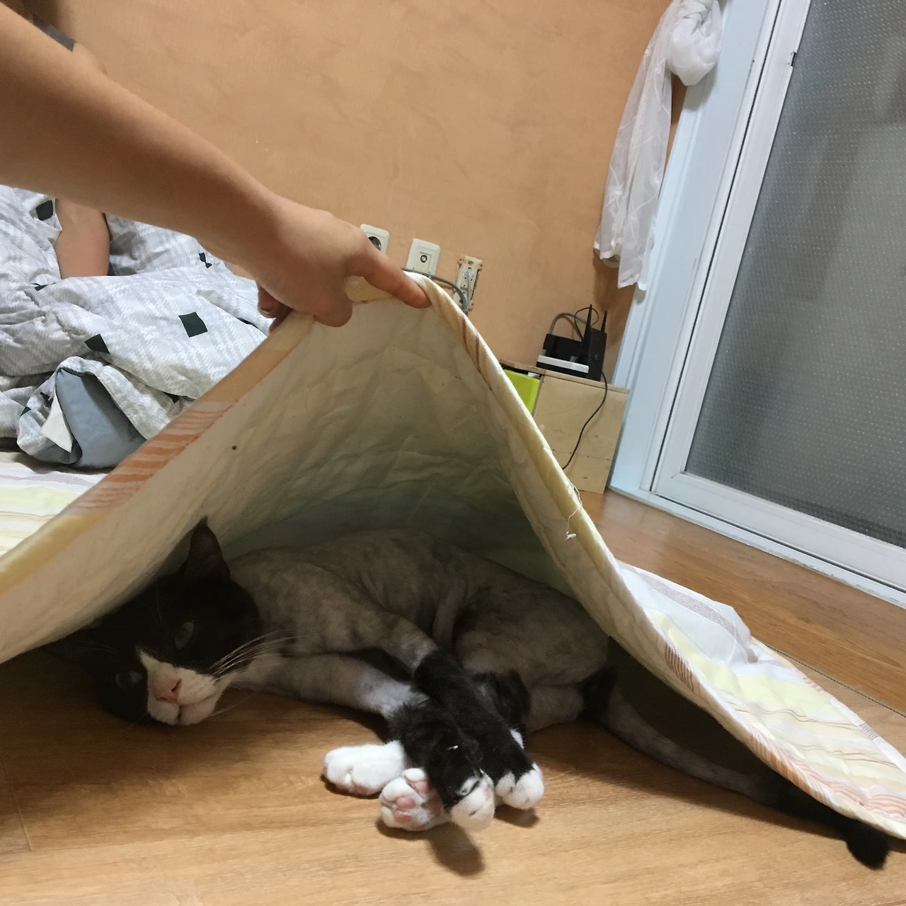 대근이는 어디든 있었다. 하지만 자기 직전엔 늘 내가 있는 곳으로 왔고 지정 방석에 누워 잠에 빠져들었다. 그 외의 시간엔 본인이 있고 싶은 곳에 있거나 온수매트 위에 있었다. 날이 추워질 수록 대근이는 점점 더 따뜻한 곳을 찾았고, 난 이불 속의 대근이에게 또 한 번 반했다.
