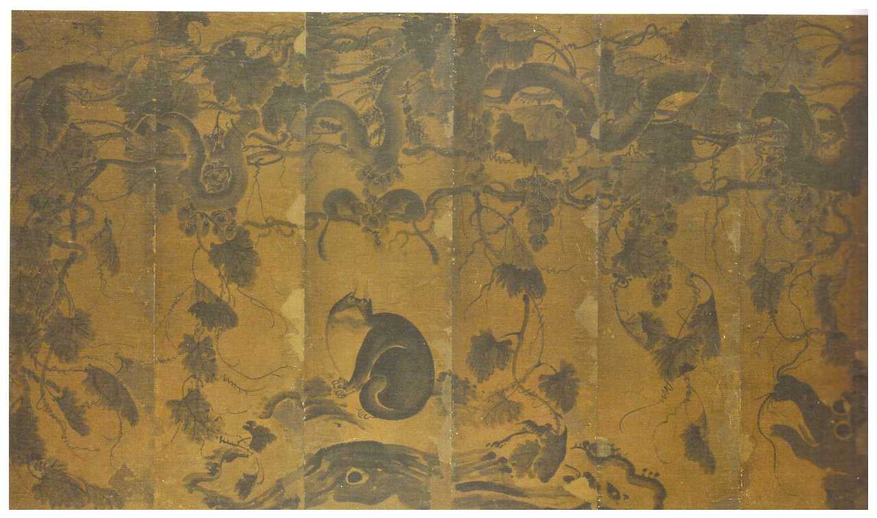 <포도도> 여덟 폭 병풍 가운데 여섯 폭, 종이에 수묵, 각 97*28cm, 가회민화박물관 소장
