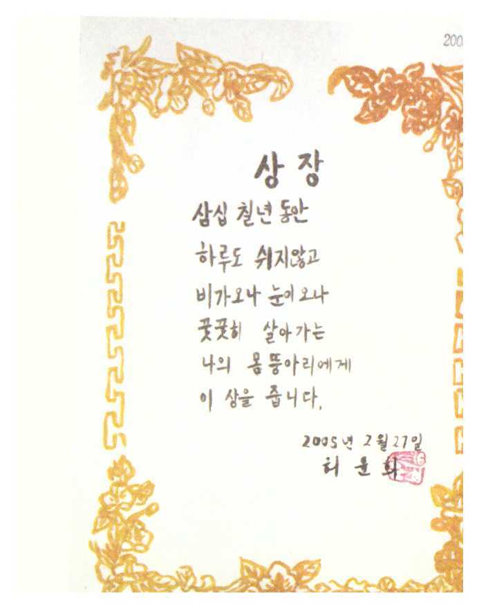 “효도하려고 하면 병이 낫질 않으니 효도하려 하지 마라. ” 지금은 고인이 된 정신의학자 소암 이동식1)은 환자들에게 말씀하시곤 했다. 그의 저서에서도 환자가 부모에게 효도하겠다는 결심을 하면 꼭 “지금 효도하려 하면 병이 낫질 않는다.”는 조언을 하셨다. 그렇다면 효도란 정확히 무엇일까? 효도는 일반적으로 세가지로 나눌 수 있다. 첫째는, 신체발부수지부모(身體髮膚受之父母)이다. 신체는 부모로부터 물려 받은 것이라 내 몸이라 해도 내 마음대로 함부로 할 수 없다는 말이다. 더 뜻을 새겨 보면, 낳아 주신 부모님이 소중히 길러주신 몸이니 자기 자신을 소중히 여기는 것이 곧 부모님께 효도하는 것이라는 뜻이다. 둘째는, 우리가 일반적으로 알고 있는 부모를 극진히 섬기는 것이다. 이것은 물심양면으로 부모를 보살피고, 좋은 음식이나 옷을 드리고, 부모님의 말씀을 잘 듣는 것이다. 우리는 상식적으로 두 번째의 경우를 효도라고 많이 알고 있다. 마지막으로 입신출세하여 내 이름을 드 높여 부모를 기쁘게 하는 것이다. 지금은 성공의 길이 여러 가지이고, 성공은 명예보다 주로 돈과 관련된 것이 많지만, 과거에는 장원급제하여 벼슬길에 나아가 이름을 알려 부모를 기쁘게 하는 일을 효도로 여겼다. 지금은 아마도 자식들이 공부를 잘해 좋은 대학을 나와 대기업이나 공무원에 취직하는 것이 효도하는 지름길로 여겨지는 것 같다. 그렇다면, 이동식 선생님은 왜 노이로제 환자들에게 효도하는 것을 당분간 만류하셨을까? 그것은 옛 그림을 보면 이해가 빠르다. 옛 그림 중에 풍속화를 보면 그 시대의 생활사 전반을 유추할 수 있는데 효제문자도 뿐만이 아니라 옛 그림에 효에 관한 이야기를 찾을 수 있다. <석진단지(石珍斷指)>라는 풍속화를 보자. 대략 두 장면이 한 화면에 있는데, 한 방에서는 아픈 사람과 간호하고 있는 사람이 보인다. 간호하는 사람의 얼굴이 울상인 것으로 보아 병을 앓은지 한참 된 듯 하다. 다른 방의 풍경은 다소 엽기스럽다. 젊은 남성이 자기 손가락을 칼로 끊고 있다. 무슨 사연일까? <석진단지>는 조선 초기의 효자로 알려진 유석진(1378-1439)의 일화를 담은 그림이다. 그림을 보는 사람들에게 효행의 감동과 교훈을 전하고자 그린 그림이다. 그런데 그림 속의 주인공인 석진이 행한 효행은 매우 놀랍고 충격적이다. 병든 아버지를 위해 자신의 손가락을 잘라 약을 만들어 드려서 아버지를 회생하게 했다는 내용이다.2) 채색으로 그린 <석진단지>는 정조 21년(1797년)에 간행된 오륜행실도(五倫行實圖)에 실린 판화 그림을 붓으로 그린 뒤 채색한 것이다.3) 이쯤 되면 효도도 병의 수준이다. 정신의학에서는 아이가 부모에게 큰 조건 없이 사랑을 받을 시기 (0-6세까지) 부모의 건강한 보살핌과 사랑이 아이에게 전달되지 않을 때 노이로제나 정신병이 생긴다고 보고 있다. 즉, 노이로제는 사랑 받지 못한 어린아이 마음과 같다. 마음이 어린아이로 돌아가 있는데, 부모에게 되려 효도하겠다는 것은 환자의 본심이 아니다. 오히려 사랑과 보살핌을 받고 싶은 마음으로 가득차 있어서 치료 받을 환자가 당장에 효도하는 것은 힘들고, 기다려야 하는 일이다. <석진단지>의 석진도 진정 부모를 위한 것인지, 의심스럽다. 진정한 효도란 부모가 낳아 주신 자신을 소중히 하는 것, 나 자신을 아끼고 사랑하는 것이다. 그런 의미에서 동시대 작가 허윤희의 상장이 눈에 들어온다. 작가 허윤희는 어느날 자기 자신에게 상장을 만들어 주었다. 37년동안 꿋꿋히 살아가는 자신의 몸뚱아리에게 상을 준다는 내용이다. 어떤가? 자기 자신의 손가락을 잘라 부모를 낫게 하는 것과 자신의 몸에 상장을 주는 것, 둘 중에 무엇이 부모님을 더 생각하는 것인지 생각해 볼 문제이다.
