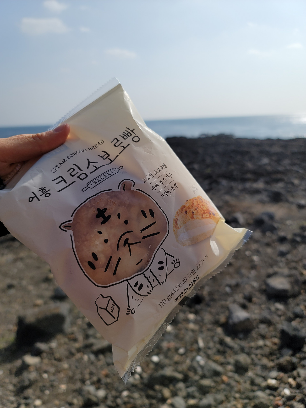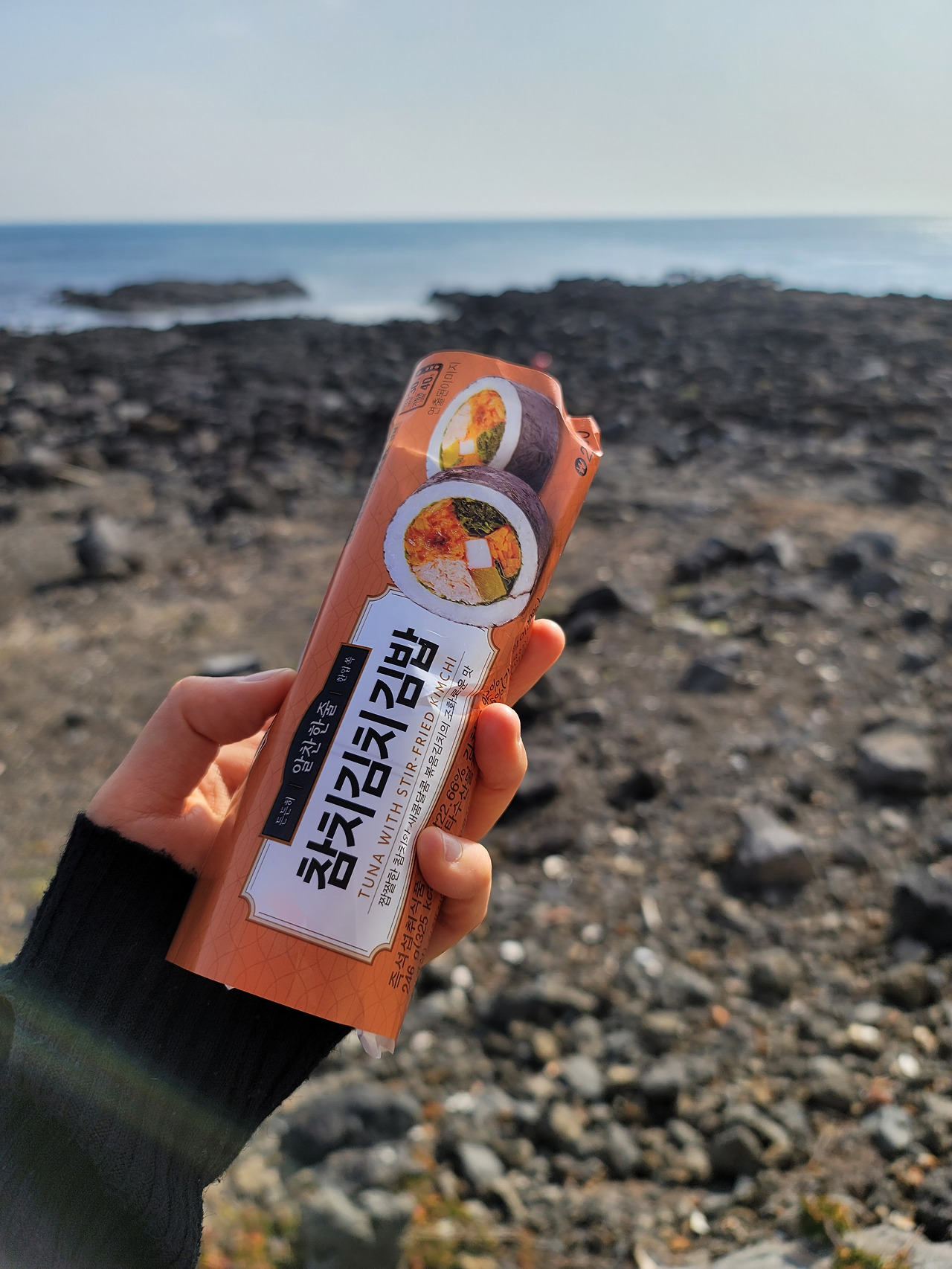 # 24시간 영업중 바닷가 편의점 식당에서 공짜 김밥을 먹다
