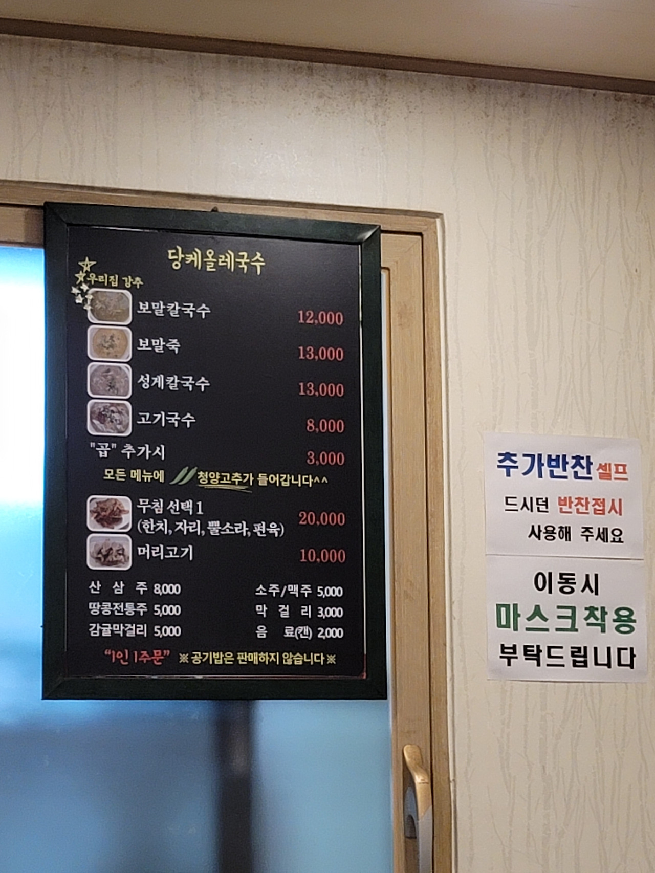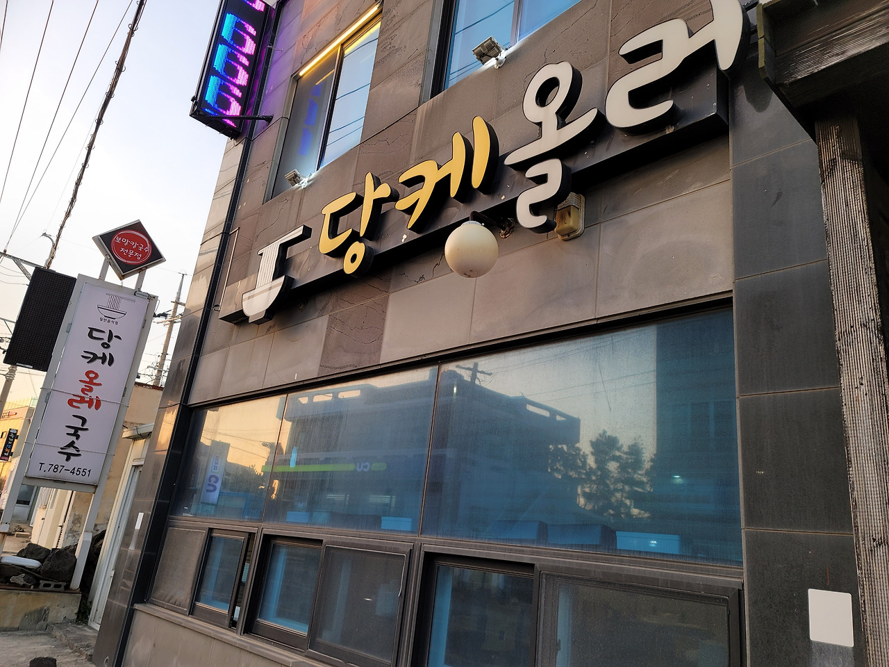 소금막해변, 그리고 표선해수욕장을 거쳐 표선올레 안내소이자 3코스의 종점, 4코스의 시작점에 도착했다. 마지막 저녁 식사는 표선 칼국수의 보말죽을 먹으려고 했으나 이미 주문시간이 마감되어 당케올레국수에서 보말죽을 먹었다. 너무 맛있어서 입천장이 데는지도 모르고 폭풍흡입했다. 같이 나온 김치와 무장아찌도 일품. 제주에 오면 꼭 먹어줘야 하는 나의 두 번째 소울 푸드 보말죽. 아직 안 드셔 보셨다면 한번 드셔보시길.