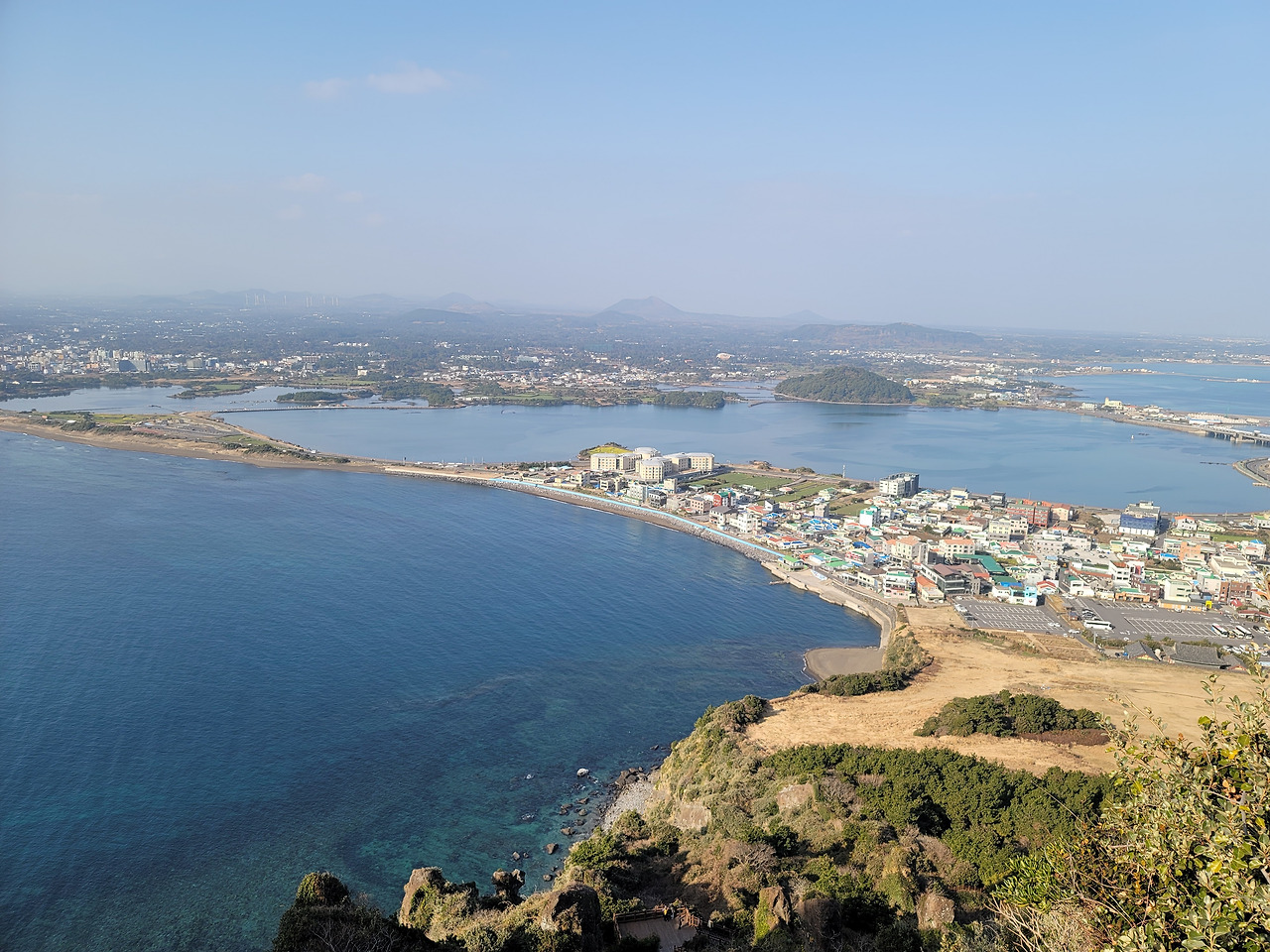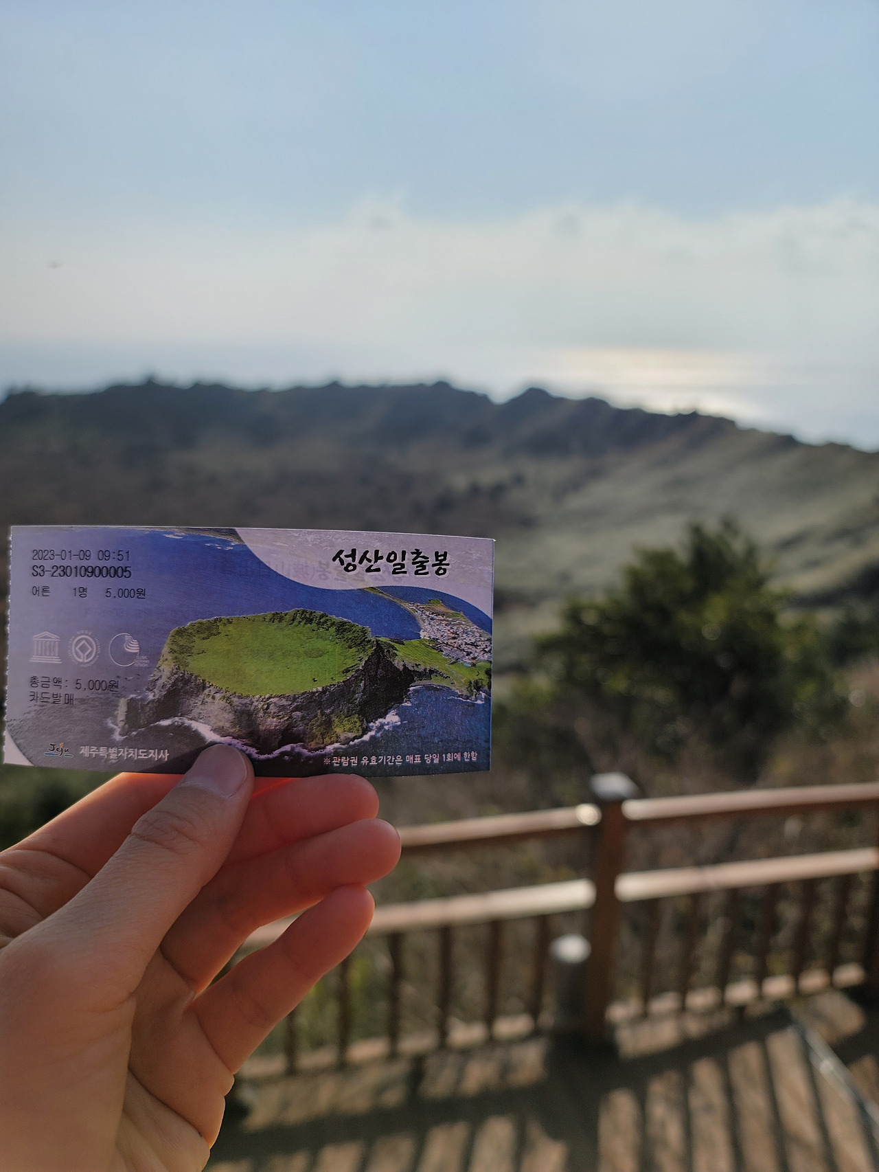 아침귤로 든든하게 식사를 마치고 다시 짐을 챙겨 성산일출봉으로 가는 버스를 탔다. 어제 우도에서 하루종일 패딩을 벗고 다녔는데 오늘 기온은 어제보다 더 높은 듯하여 과감히 패딩은 벗고 얇은 티 하나에 남방 하나만 걸치고 나왔다. 추위에 약한 나의 겨울 로망은 치앙마이나 발리처럼 따뜻한 나라를 이런 차림으로 가볍게 걸어 다니는 것이었는데 제주에서 이렇게 소원성취를 한다.
