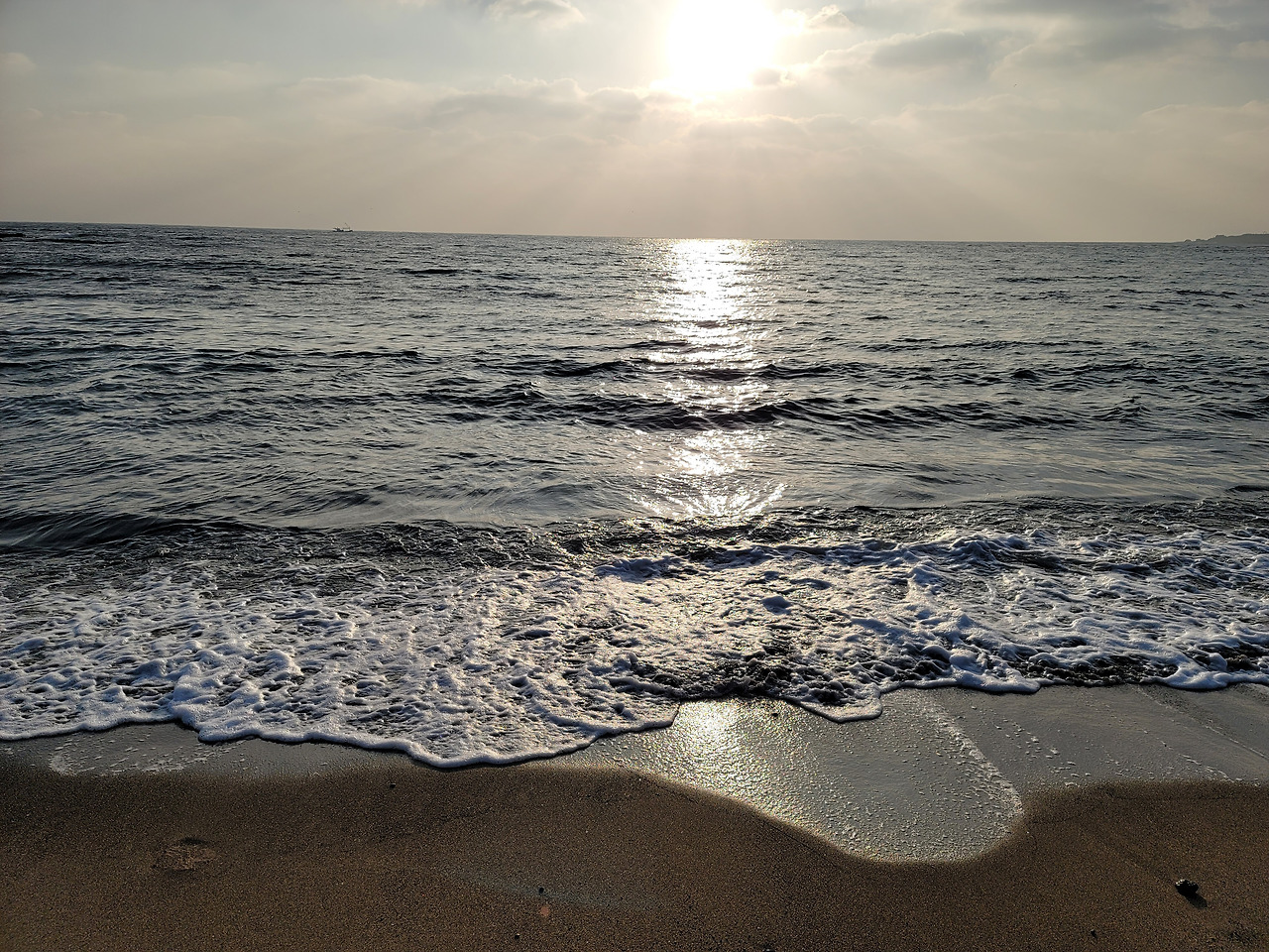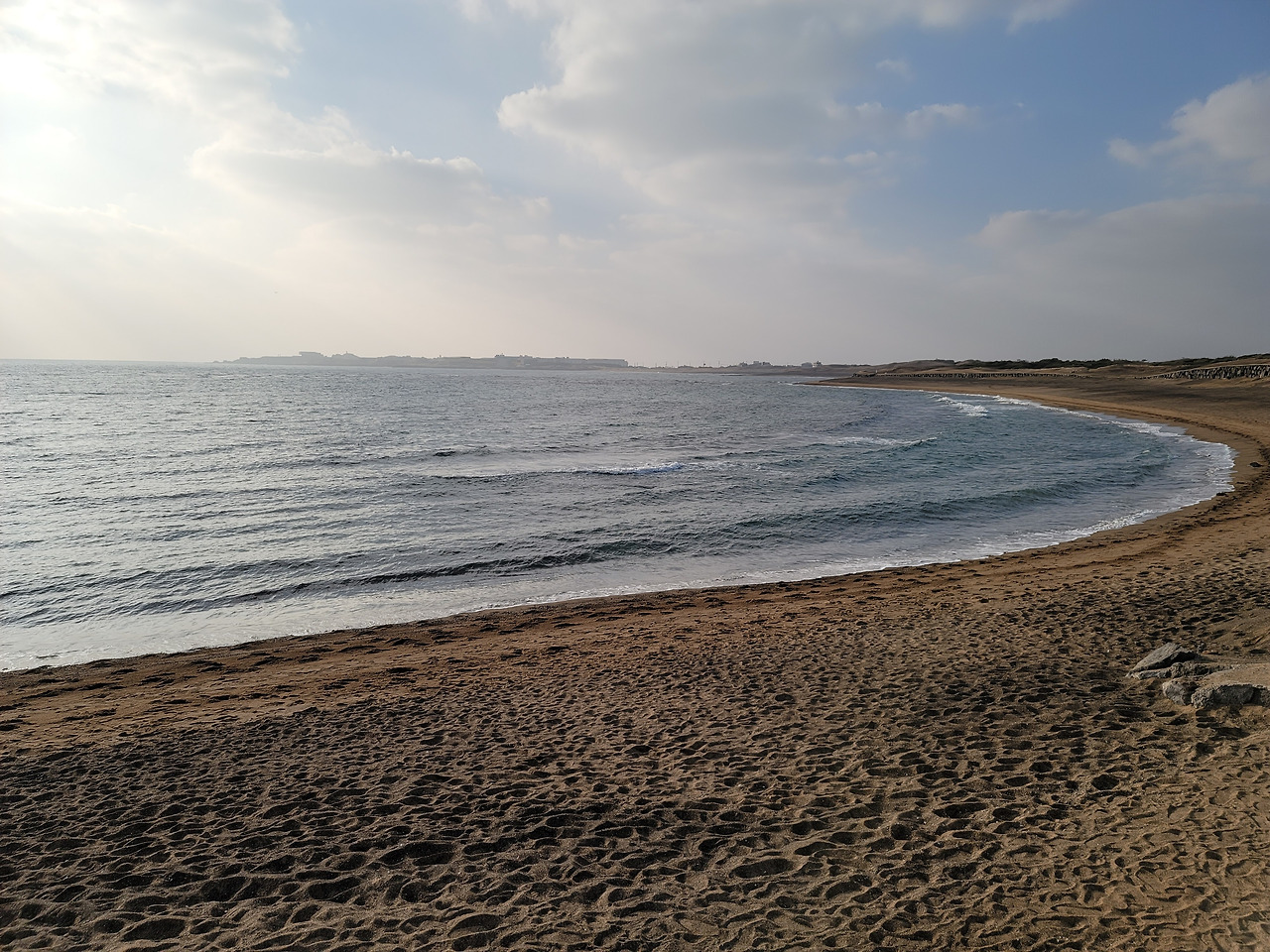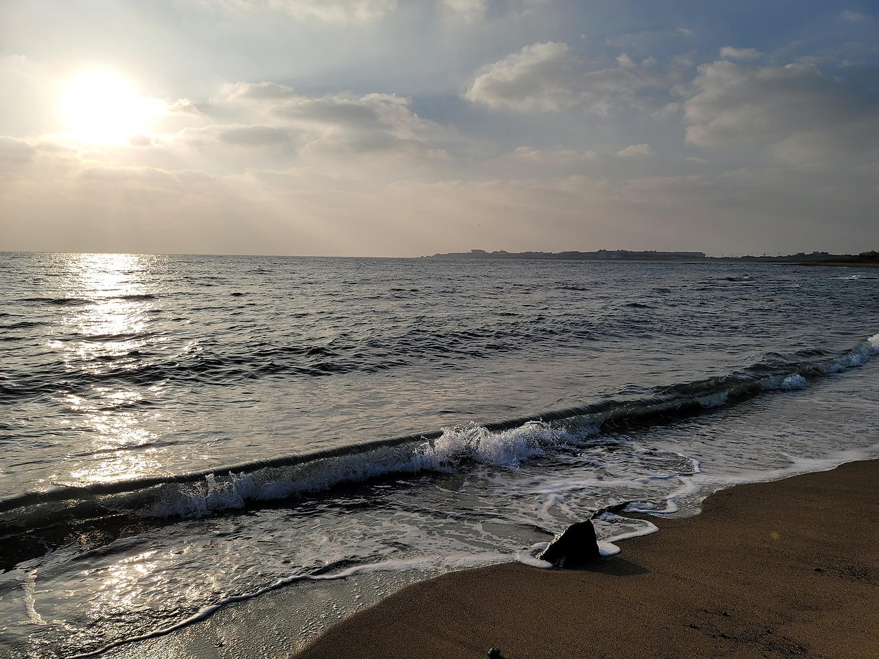 오늘은 제주 걷기 여행의 마지막날이다. 첫 목적지는 광치기 해변. 이른 아침에 산책지로 선택한 광치기 해변엔 아무도 없었다. 가끔 말을 타고 해변을 달리는 사람과 관광객 한 두 명이 뜨문뜨문 있을 뿐. 한적한 겨울 아침 바다를 오롯이 마주할 수 있었다. 저 멀리 어제 올랐던 성산일출봉과 섭지코지가 보였다. 이제 막 떠오르는 해가 내리쬐는 해변은 신비로운 분위기가 감돌았다. 목적 없이 광치기 해변 모래사장을 거닐었다. 영상을 찍거나 사진을 찍으며 한가롭게 산책했다. 굳이 어떤 목표를 세우지 않고 발길 가는 대로 걷는 것이 기분 좋았다.