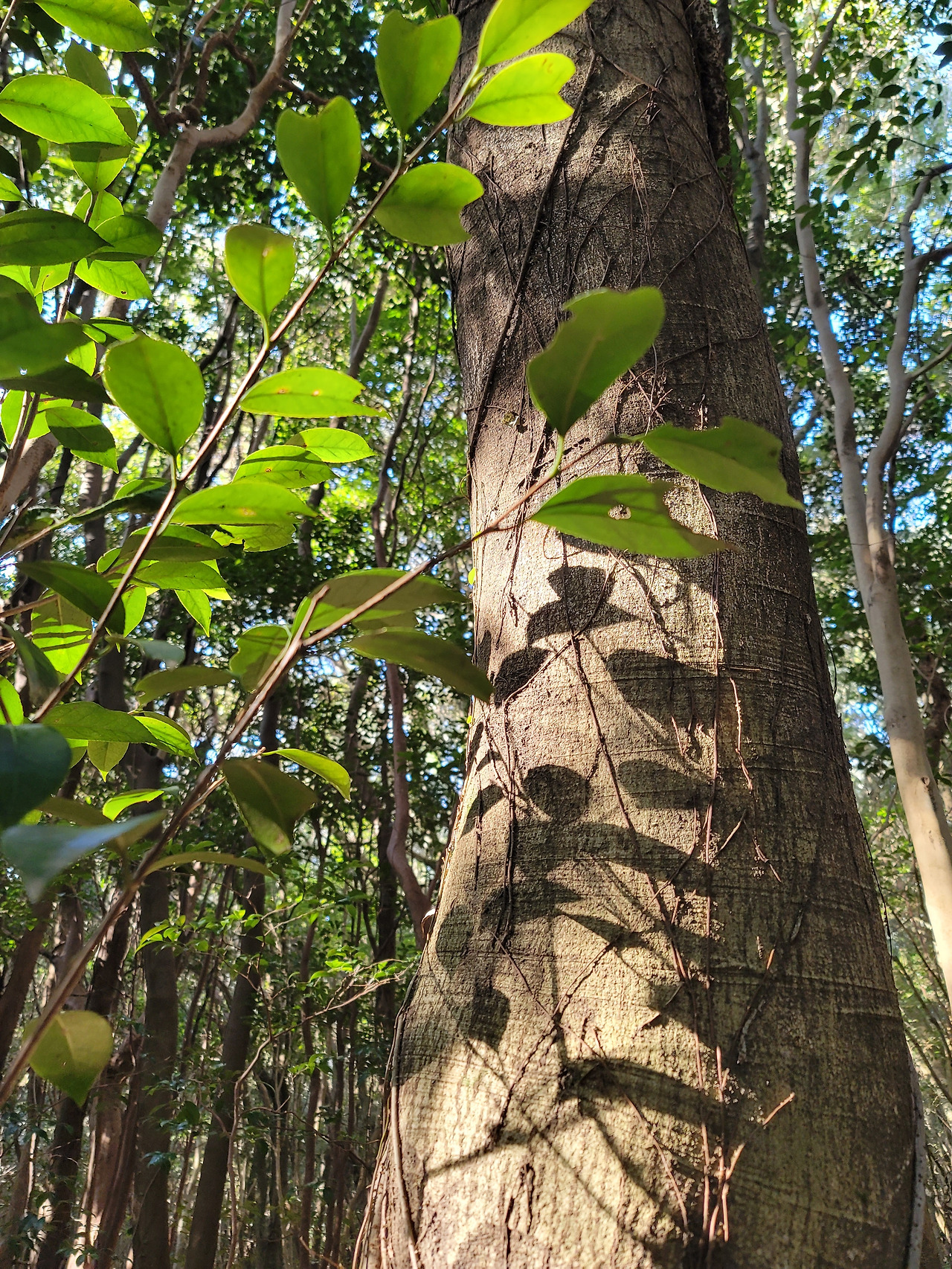 설명을 잘 듣고 드디어 출발! 처음 걷는 숲은 언제나 두근거림을 준다. 그리고 이 두근거림은 어느새 탄성으로 바뀌어 나는 가는 내내 감탄을 금치 못했다. 토토로가 살 것 같은 신비로운 숲의 분위기와 기이한 나무들의 아름다움, 사람이 발길이 닿지 않아 원시의 생명력이 흐르는 숲. 나는 이 숲과 사랑에 빠져버렸다. 이번 제주 보름 살기 여행 중 가장 아름다웠던 곳을 하나만 꼽으라면 나는 주저 없이 이곳을 뽑을 테다.