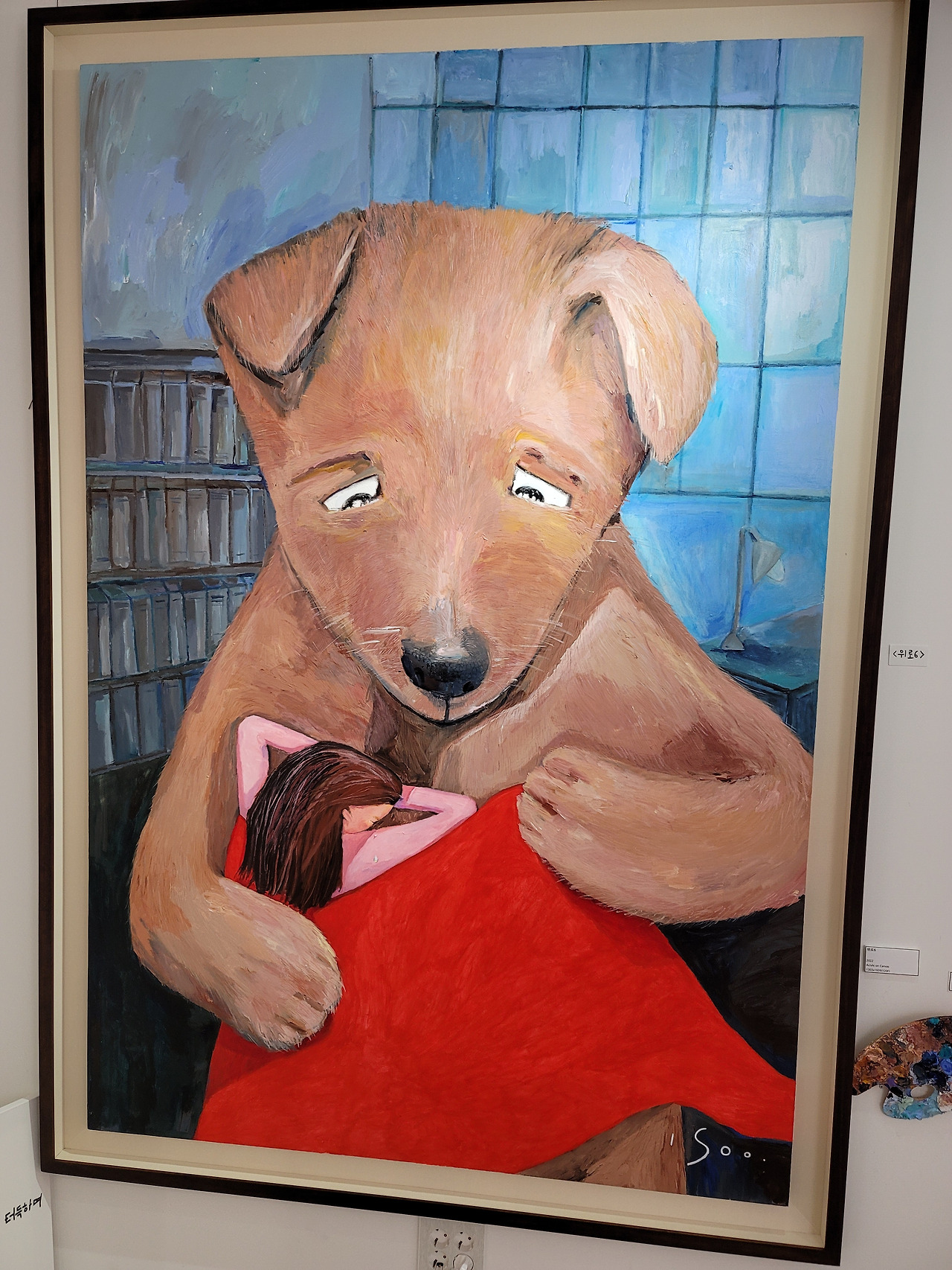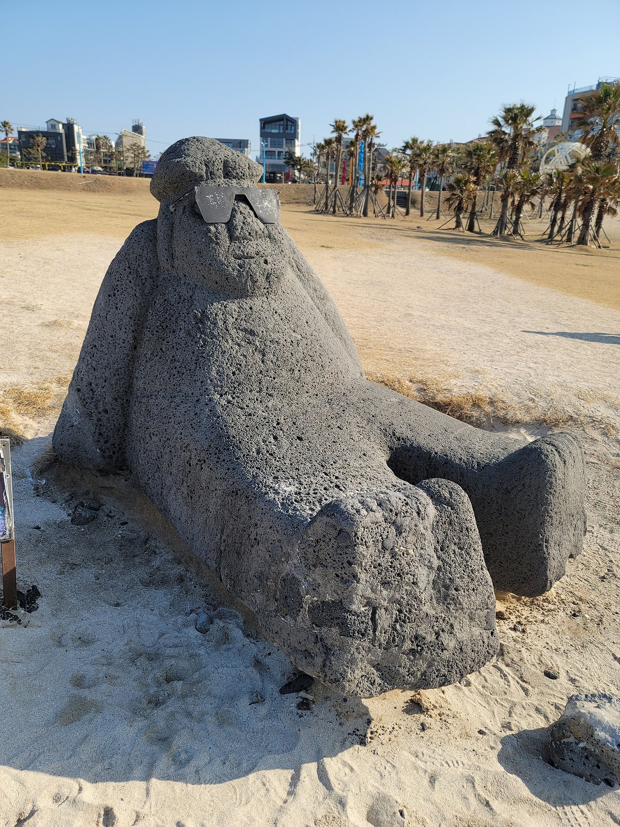 아름다운 보석 같은 순간을 또 하나 수집하고 기쁜 마음으로 함덕 해변을 걷는다. 선탠하는 돌하르방, 여기저기 아름다운 해변과 자신의 모습을 담는 관광객들, 맨발 걷기 하시는 아주머니, 해변의 쓰레기들을 줍는 아름다운 사람, 손잡고 다정하게 걷는 커플과 가족들. 아름다운 함덕 해변을 걷고 나는 즉흥적으로 갤러리 하나를 방문하기로 했다.