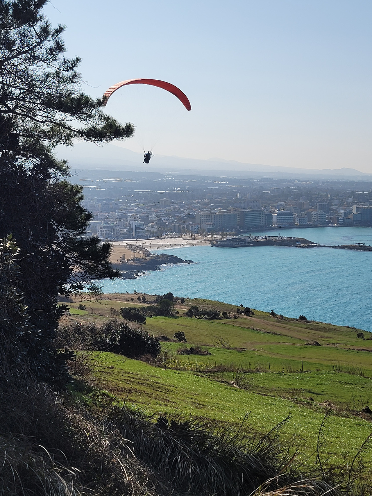 북촌포구에서 시작해 아름다운 환해장성을 걷고, 도착한 곳은 서우봉이다. 나는 이곳에서 또 하나의 보석 같은 순간을 수집했다. 서우봉 위에서 바라보는 함덕해변의 아름다운 순간. 햇볕에 반짝이는 바다의 윤슬과 푸른 하늘을 나는 패러글라이딩, 조그만 점들이 되어 함덕해변을 즐기고 있는 사람들의 무리, 겨울임에도 초록빛으로 생명을 내뿜고 있는 풀과 식물들. 이보다 더 완벽한 순간이 있을까. 이곳에서 보는 서우낙조는 영주 10경 중 하나인 사봉 낙조와 비교해도 손색이 없다는데 낮의 풍경 또한 나에게는 너무나 아름다워 발길을 뗄 수가 없다.