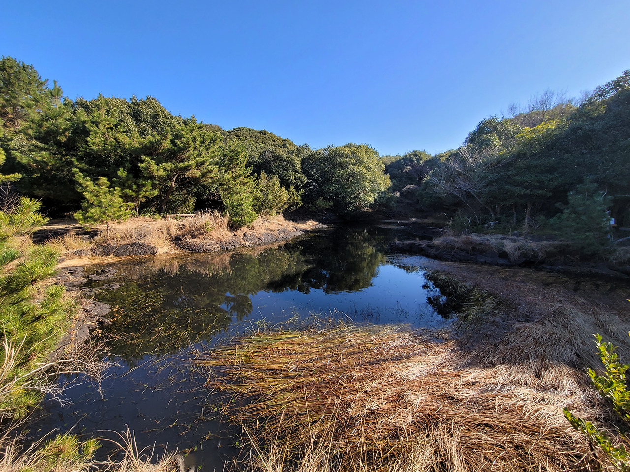 오늘의 오전 방문지는 제주 동백동산 습지이다. 동백동산은 선흘리에 위치해 있는 곶자왈 지대로 크고 작은 암석과 나무, 덩굴식물이 함께 있는 곳이다. 연중 온도 변화가 적은 독특한 미기후 덕분에 북방계 식물과 남방계 식물이 공존하고, 난대상록활엽수의 천연림으로 학술 가치가 높아 지방기념물로 지정 보호되고 있다. 2011년에는 동백동산이 람사르습지로 등록되고, 2013년에는 전국생태관광지로 2014년에는 세계지질공원 명소로 지정되었다.