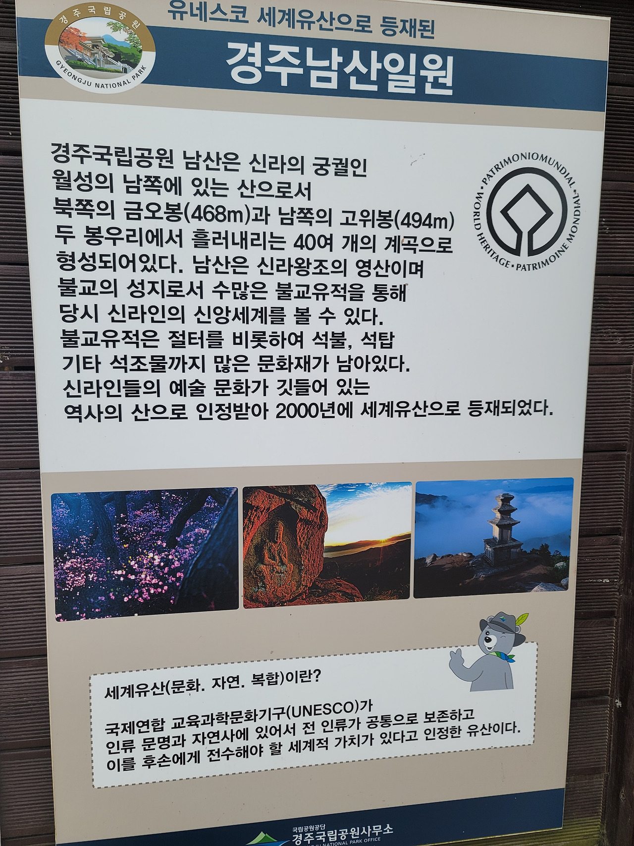 오늘의 목적지는 산 전체가 보물이라는 경주의 남산이다. 남산은 신라의 수도였던 서라벌의 남쪽에 있어서 붙여진 이름이다. 금오봉과 고위봉의 두 봉우리와 60여 개의 골짜기, 그리고 80여 개의 크고 작은 봉우리로 이루어져 있다. 그리고 남산을 걷고 난 지금은 ‘남산을 보지 않고서 경주를 보았다고 할 수 없다’라는 말이 무슨 말인지 온몸으로 깨달았다.