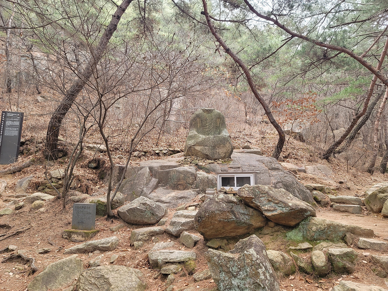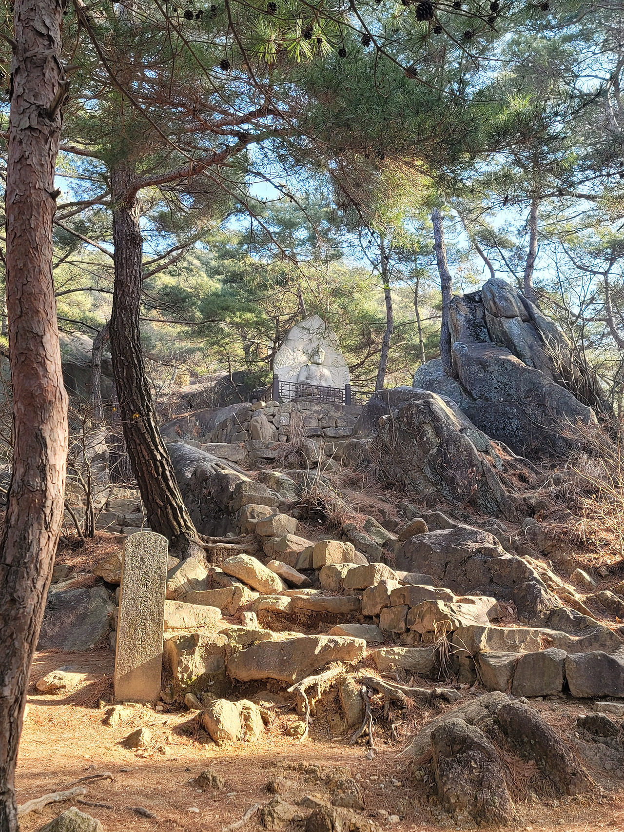오늘 나의 걷기에는 주제가 있다. 그것은 아주 천천히 걸으며 산과 문화재들을 온몸으로 음미하며 느끼는 것이다. 머리로 걷는 것이 아니라 몸으로 걷기. 사실 나는 지금까지 몸이 아니라 머리로 걸었다. 머리로 걸었다는 것은 두 가지 의미가 있다. 첫 번째 의미는 걸으면서도 머릿속에는 다른 생각을 하느라 정작 내가 현재 걷고 있는 길과 풍경을 진심으로 알아차리며 걷지 못했다는 뜻이다. 두 번째 의미는 세계를 있는 그대로 보고 경험하며 걷는 것이 아니라 관념과 생각으로 창조한 세계를 걸었다는 의미이다. 아무 관념이나 선입견 없이 순수한 눈으로 무언가를 바라보고 경험하는 것이 아니므로 순수하게 몸으로 걷는 것이 아니었다.