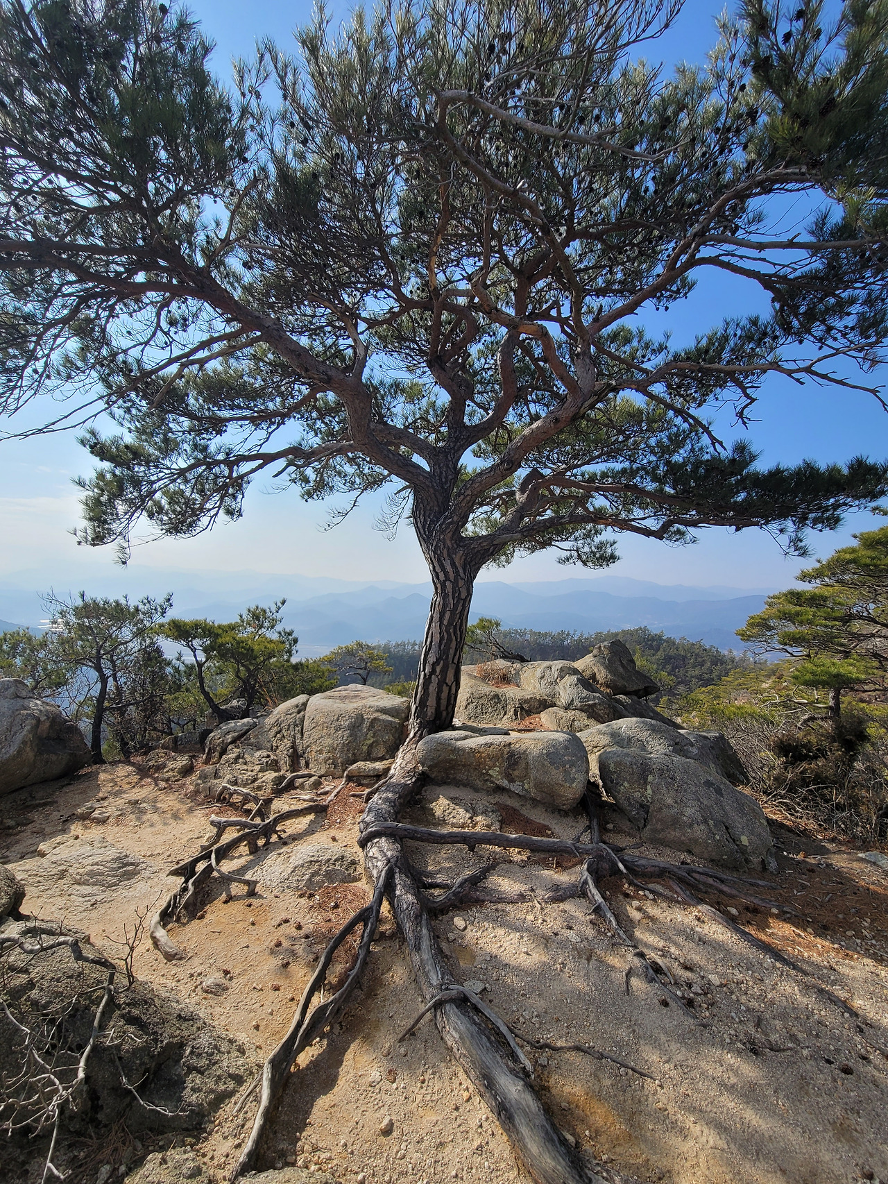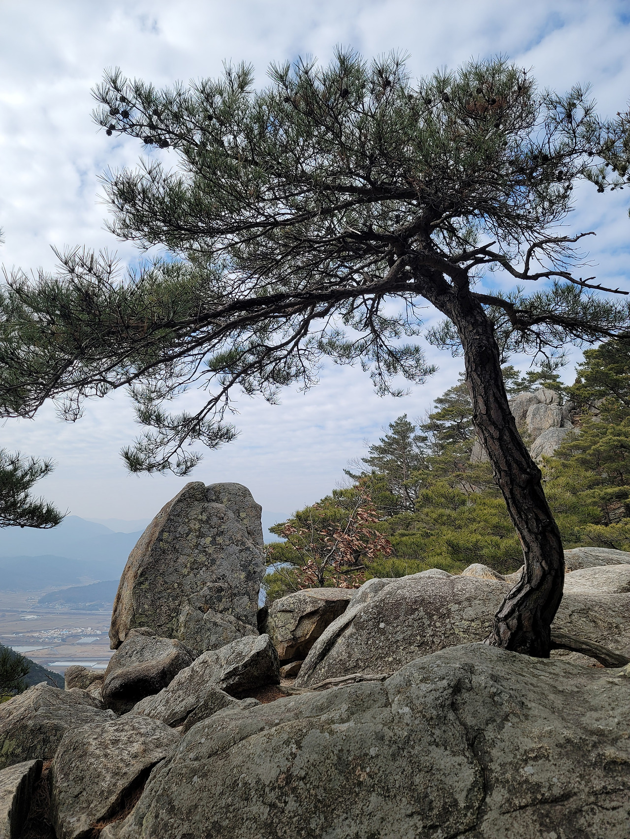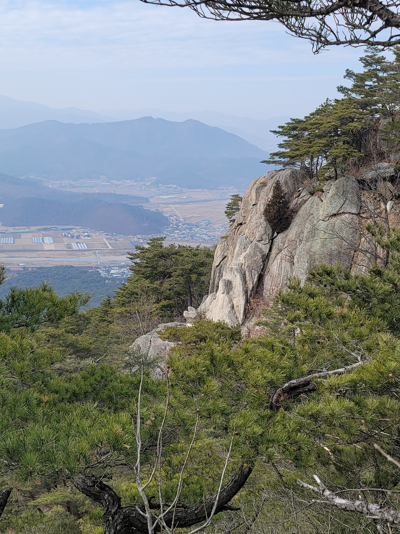남산은 올라갈수록 그 풍채와 기세가 드러나는 산이었다. 처음에는 여리게 시작했다 점점 거세어지는 음악처럼 갈수록 암벽들과 괴석들이 나타나고, 소나무들이 어우러져 장대한 그림을 만든다. 그 맛에 취해 계속 발걸음을 옮긴다. 그리고 남산의 하이라이트인 바둑바위를 만났다. 경주의 너른 들판과 마을, 도로와 강, 산과 하늘이 어우러져 아름다운 풍경을 보여주는 그곳에 서니 감탄이 나올 수밖에 없었다. 마치 제주의 오름처럼 낮고 유연한 산들이 어우러져 들판을 감싸 안고 있는데, 그 선들이 예술이다. 나는 지금까지 자연이라는 예술가만큼 위대한 예술가를 보지 못했다. 이 산들이 보여주는 아름다운 선들을 자연 말고 그 누가 창조할 수 있을까. 바다 위에 떠있는 생명체들 인마냥 들판을 전경으로 낮게 넓게 펼쳐진 선들의 향연이 너무나 편안하고 우아하다. 소박하고, 예스럽다. 바둑바위에 앉아 한참을 자연이 만든 예술을 감상하느라 시간을 보냈다. 경주에서 만난 아름다운 풍경들 중 손에 꼽을 만한 절경이었다.