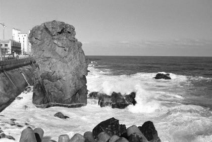 묵호항에서 바닷가를 따라 북쪽으로 700m 남짓 올라가다 보면 바닷가에 우뚝 솟아 있는 거대한 바위를 쉽게 발견할 수 있다. 처음 본 사람이라면 누구나 범상치 않은 모습에 "이 바위는 뭘까?"하고 궁금증을 자아낼 것이다. 기다란 직사각형 모양의 바위인데, 까마귀가 바위 위에 둥지를 만들어 새끼를 키운다고 해서 '까막바위'라고 불려지는 바위이다.