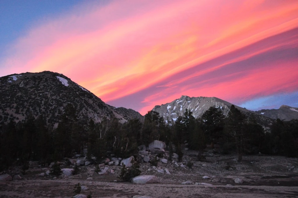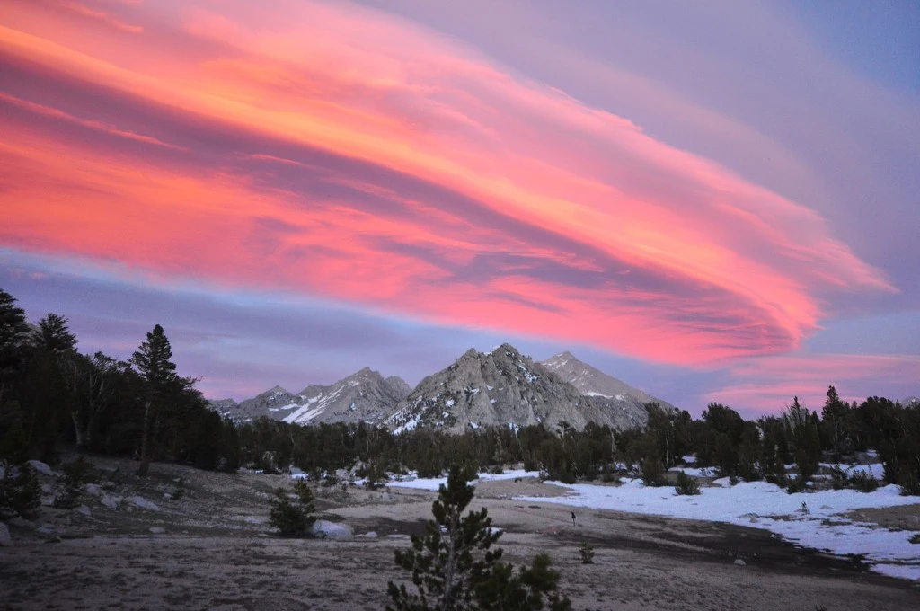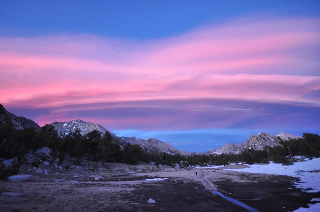 나중에 찾아보니까 이런 구름을 시에라 웨이브 (Sierra Wave)라고 한다. 시에라 네바다 산맥에서 종종 보이는 구름이라고 한다. 내가 JMT 끝나고 향수에 젖어서 페이스북 JMT 그룹 페이지에 들어가 봤는데, 내가 찍은 사진을 누가 좀 변형해서 올려놓은 것이다! 아니 뭐지? 자세히 봤더니, 같은 날 요세미티 (내 JMT의 종착역)에서 JMT를 시작한 하이커도 이 구름을 찍은 것이다! 세상에 200 km나 떨어져 있는 JMT 종착점에서 이 구름이 보였다니. 신기했다.