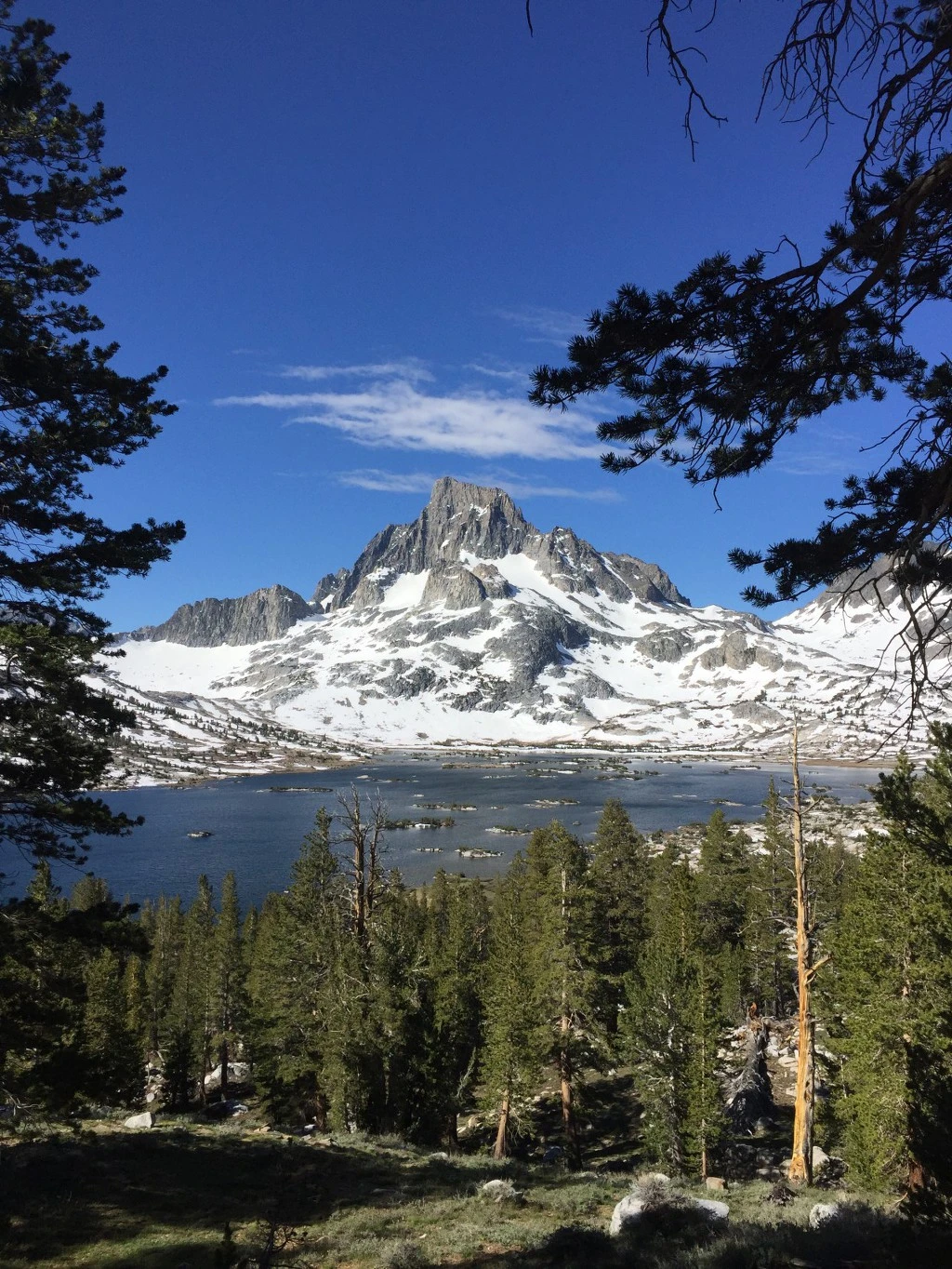 이 전날 밤 묵었던 Thousand Island Lake를 떠나며 화창하고 따뜻한 날씨에 탁 트인 호수와 설산이 넘나 멋있어서 찍었다. 눈누난나~ 이 정도 속도라면 오늘 내로 요세미티에 입성하게 될 거다. 유후~