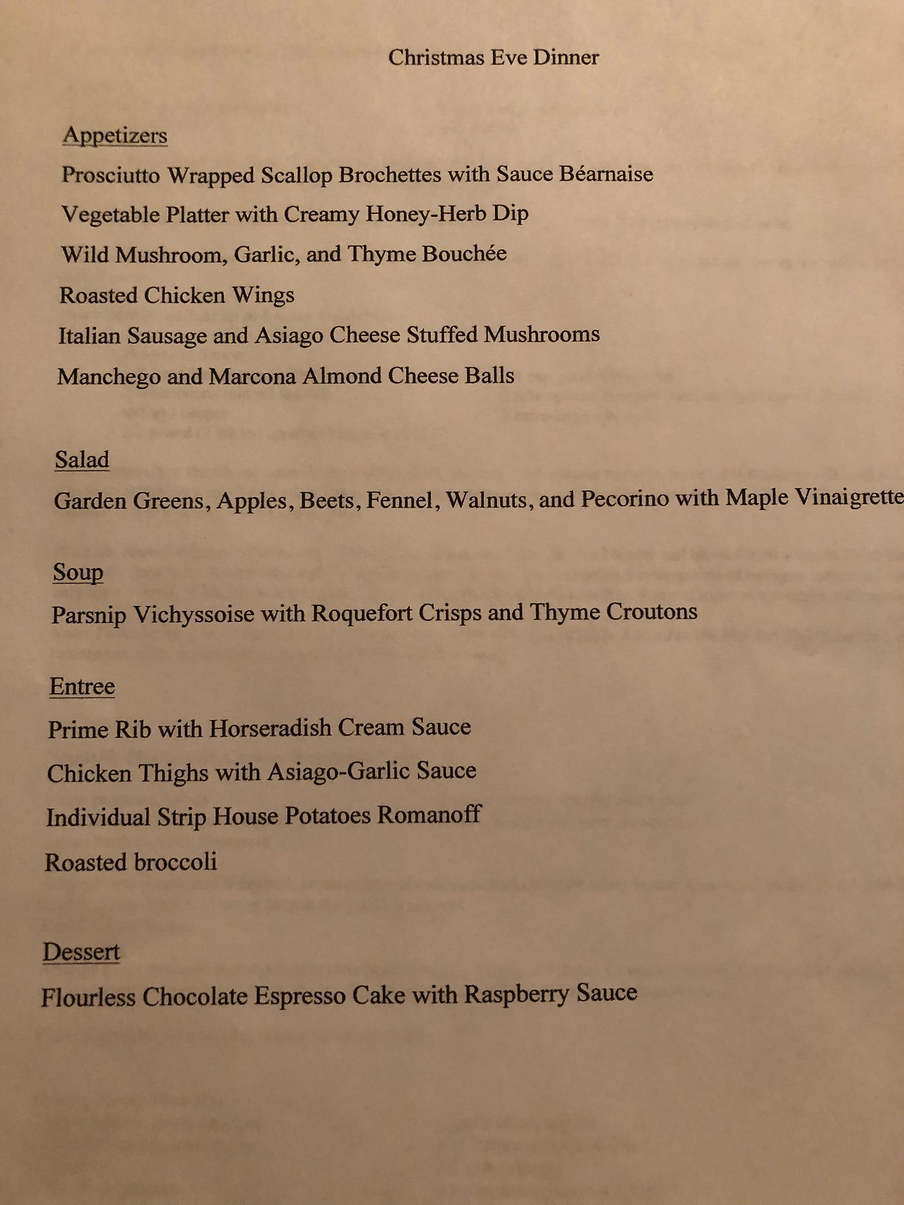 참고로 우리 시이모가 짜 온 2018년 크리스마스 디너 계획. 왼쪽은 당일 12시부터 뭘 해야 하는지 시간표가 써 있다. 오른쪽은 말 그대로 코스 내용. 이걸 다 먹고 나면 콤부차 필수다.