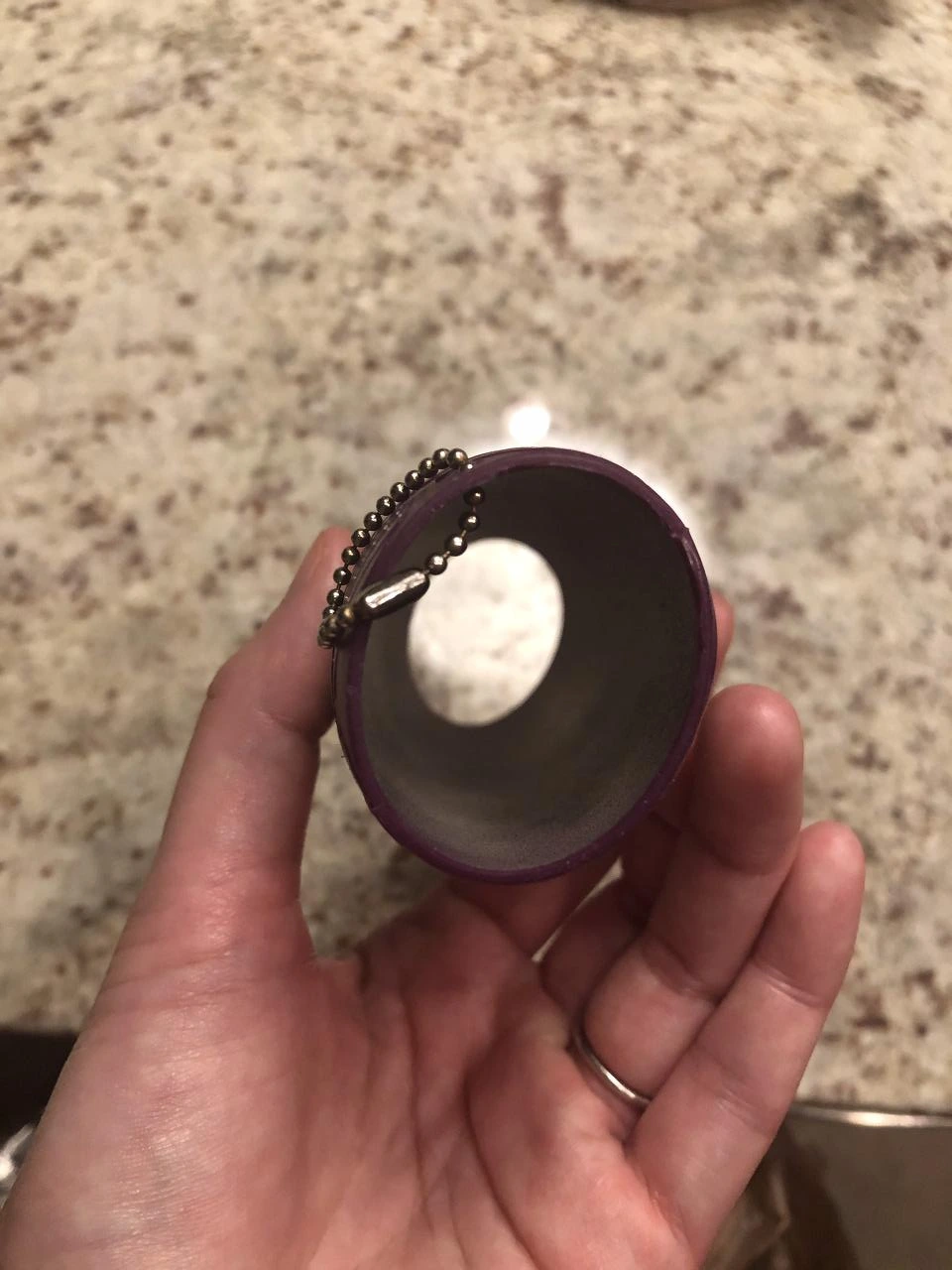 저 하얀 컵에 물을 채우고 회색 뚜껑을 닫는다. 그럼 구의 반 정도만 물이 차 있게 된다. 나머지 반을 채워 구를 만들려면 회색 뚜껑 가운데 나 있는 구멍에 물을 계속 넣으면 된다. 신기한 게 물이 저 구멍으로 들어가기는 하는데, 뒤집어도 물이 빠져나오진 않는다. 싱기싱기.