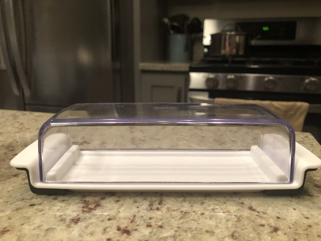 버터를 상온에 두기 위한 버터 접시 (butter dish)다. 마가린 통 같은 것에 들어 있는 버터도 있지만, 아예 스틱 형태로 된 버터도 있는데, 이것은 스틱용이다. 우리가 산 건 어디까지가 1 테이블 스푼인지 눈금도 그어져 있다. 사실 버터 접시를 검색해보면 엄청 이쁘고 아기자기한 것들이 많다. 세라믹으로 된 것들 중에 버터 접시, 소금/후추통, 작은 우유병 세트로 된 것이 많은데 정말 예쁘다. 언젠가 나도 도자기 그릇에 관심이 생기면 세트로 사고 싶다.