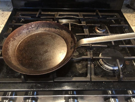주물팬과 비슷하게 시즈닝을 해주긴 해야 하는데, 오븐에 굽지 않아도 된다. 평소엔 그냥 물로 씻고, 기름 코팅이 많이 없어지면 기름 두르고 가스렌지 위에서 열을 가해주면 끝이다. 사진을 보면 정말 오랫동안 안 씻은 것처럼 지저분해 보이지만 그렇게 두고 쓰라고 하니 처음엔 좀 찝찝했지만 그냥 쓴다. 무게는 일반 후라이팬에 비해선 많이 무겁지만 그래도 주물팬에 비해선 가볍다. 혹시 주물팬이 너무 무거우면 카본 스틸 팬을 시도해봐도 좋겠다 (광고 아님)