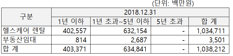 1) 보고기간말 현재 회사는 헬스케어렌탈사업과 관련하여 최종소비자에게 정수기 등을 임대