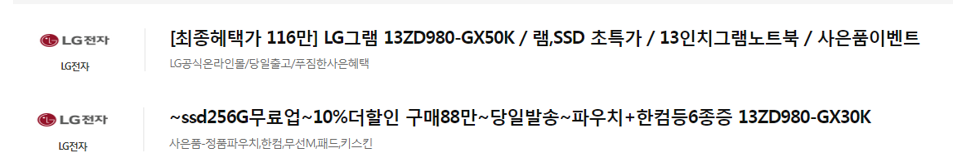 마지막은 정확성이다. 아마존의 가장 큰 강점을 추천이라 이야기한다. 상품을 구매하고자 하면 추천을 하고 그 추천의 정확도가 소름 끼치게 정확하다고 한다. 기존의 구매정보와 장바구니 혹은 검색정보들을 반영하여 추천을 하기에 누구보다도 구매자를 잘 이해한다는 의미다. 이러한 정확성이 오픈마켓에서도 동일하게 적용될 듯하지만 그렇지 않다. 다시 LG 노트북으로 들어가서 비교해보자. 아마존의 상품명을 보면 세부 항목마다 쉼표가 붙어있다. 즉 데이터베이스에서 상품 타이틀을 관리함을 의미한다. 고객의 이 상품 구매는 어떤 용도로 노트북을 사용하는지 얼마나 이동이 많은지, 어떤 색상을 선호하는지 등을 유추할 수 있게 도와준다는 뜻이다