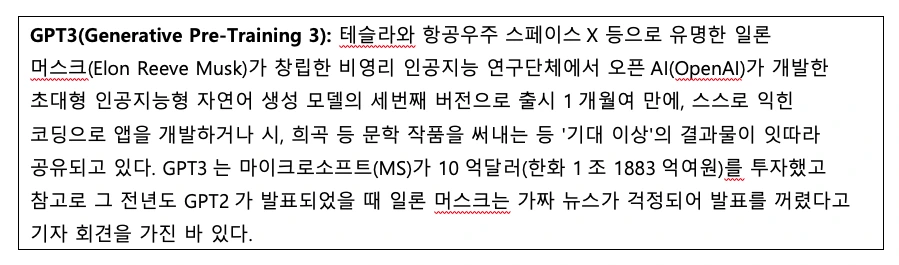 영화배우인 톰 행크스에게 연예 기자가 팬이라고 밝히면서 “당신이 지금까지 한 연기 가운데 가장 마음에 드는 캐릭터가 무엇이냐?”라는 질문에 “우리는 나이가 들면서 인생이 얼마나 짧고, 해야 할 일이 무엇인지 깨닫게 되는데 이건 우울한 일이지만 대신 우리가 매일 반복하는 하는 일 그리고 그곳에서 만나는 사람들을 소중하게 생각할 수 있는 계기를 주기도 합니다. 그래서 내가 가장 마음에 드는 캐릭터가 무엇이냐는 물음에 답을 하자면 내가 바로 다음에 할 역할입니다” 는 답을 내놓았다. 뻔하고 지루한 답변으로 매우 톰 행크스다운 응답으로 여기게 하는 이 인터뷰는 기자가 아닌 인공지능이 알아서 쓴 것이다. 하지만 누가 봐도 진짜 그 사람이 한 말 같이 정리해 놓아 천연덕스럽기까지 하다.